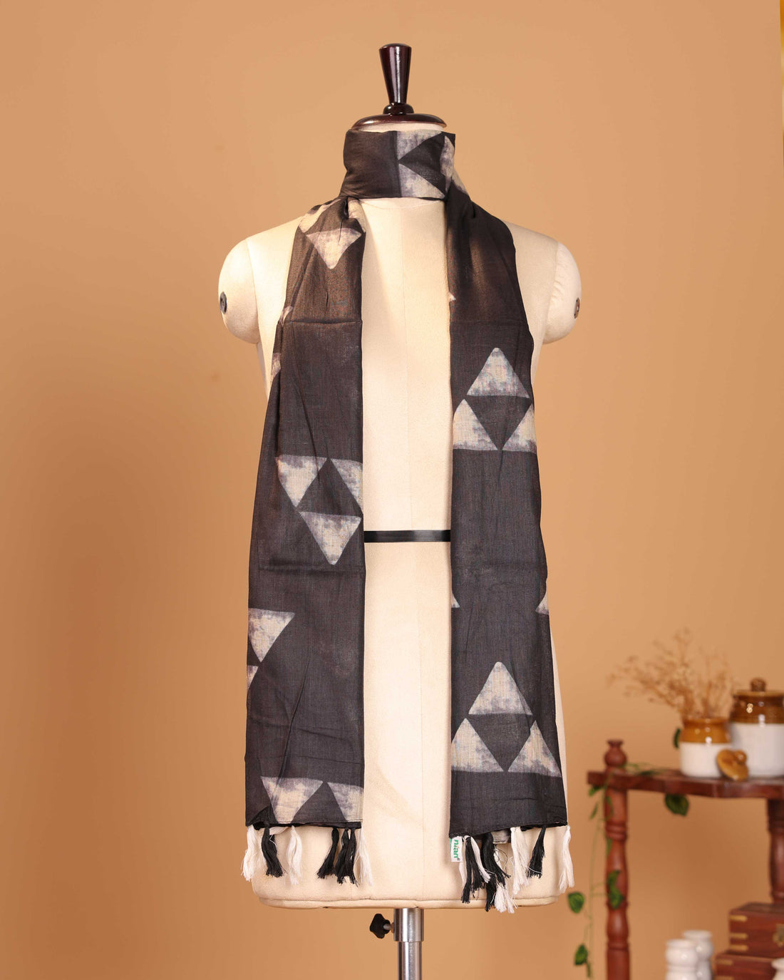 Traditional Geometric Motif Women's Stole - Black