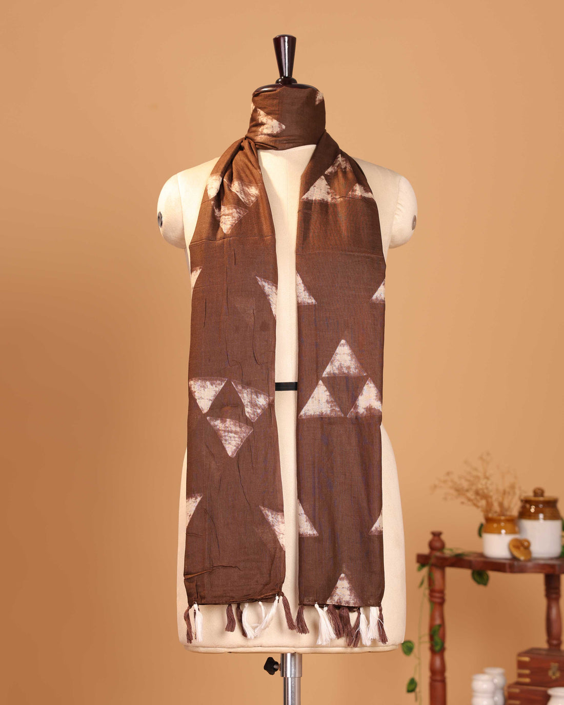 Traditional Geometric Motif Women's Stole - Brown