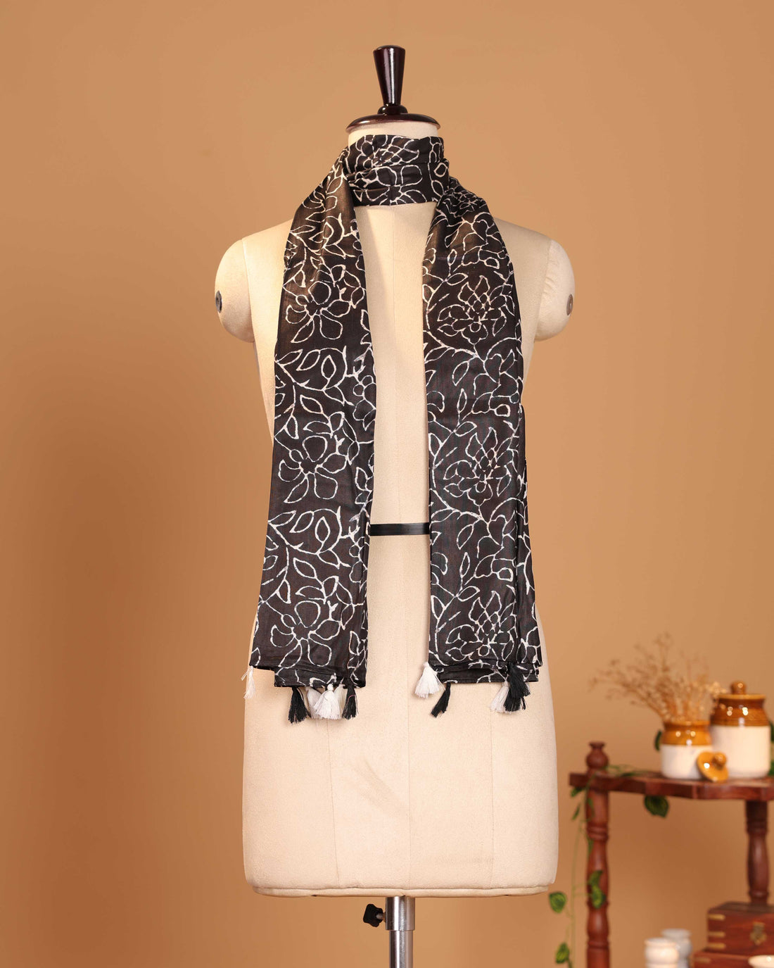 Traditional Vine Floral Inspired Women's Stole - Black