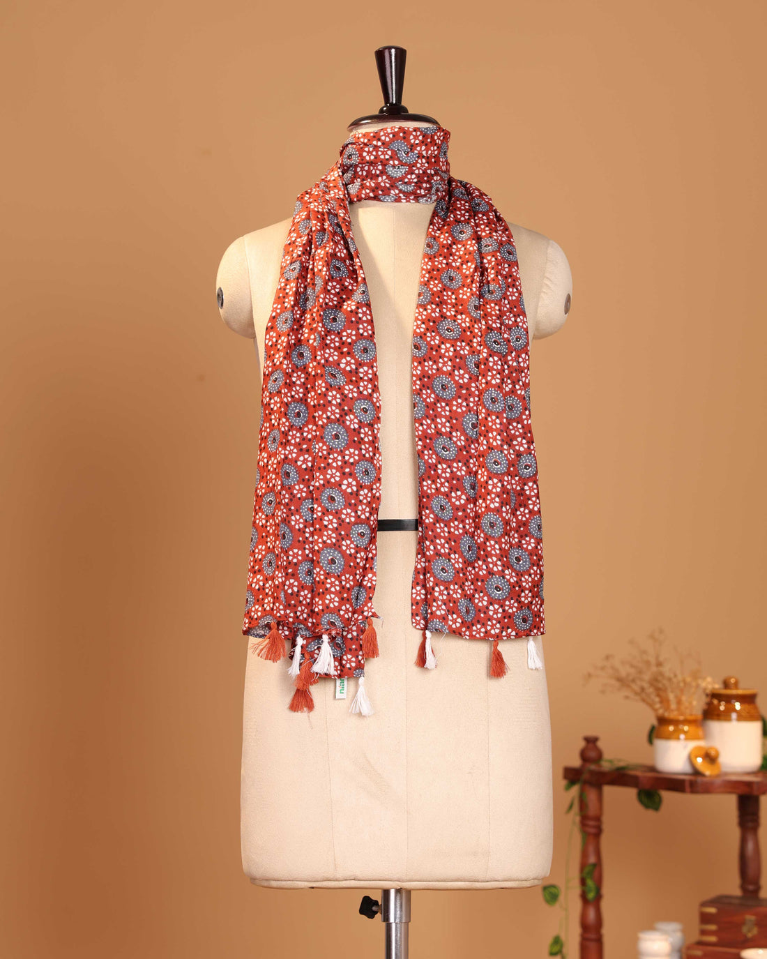 Traditional Floral Inspired Ajrakh Women's Stole - Red