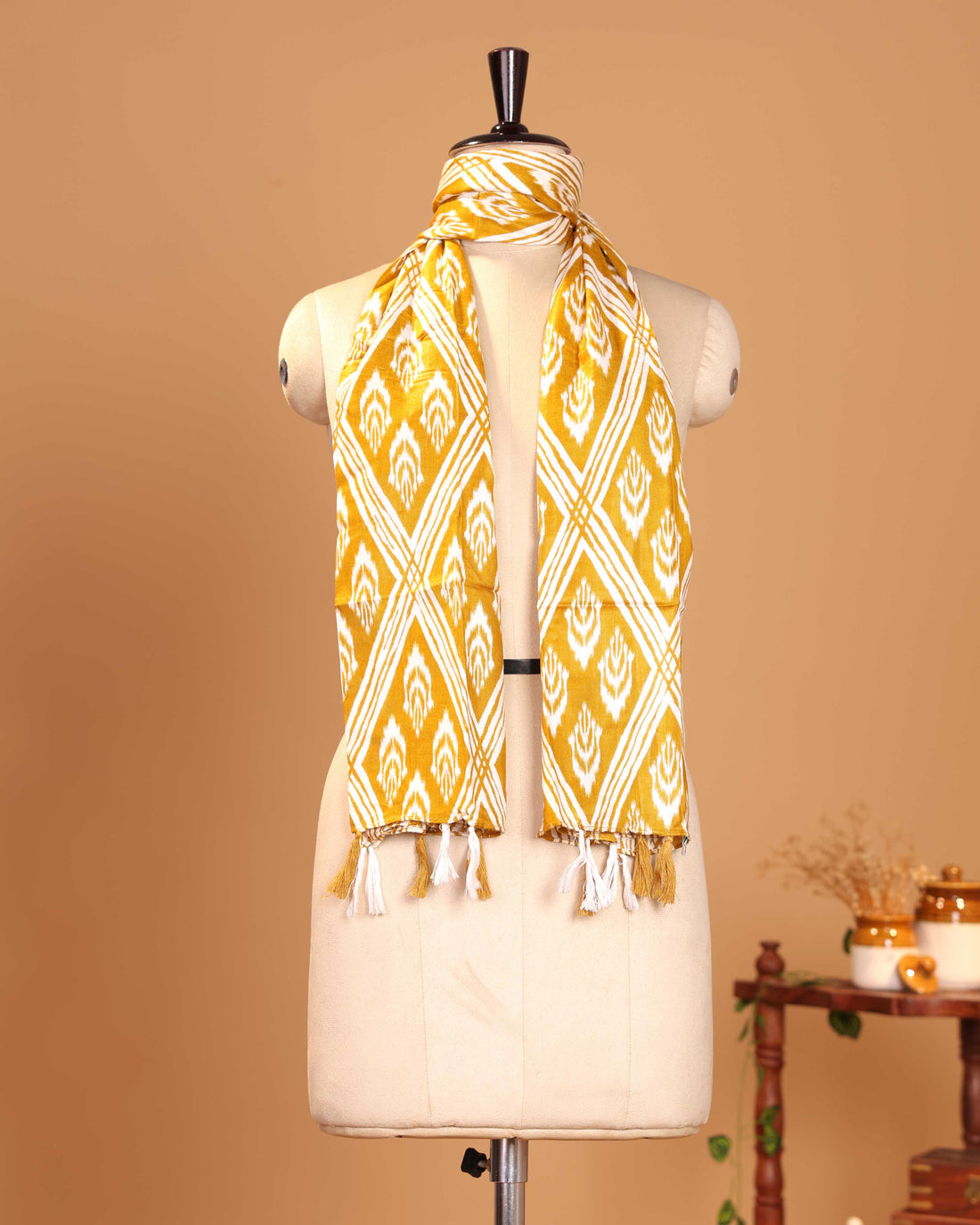Traditional Pochampally Inspired Women's Stole - Yellow