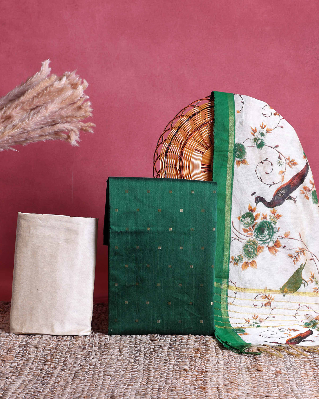 Product Type - Women’s Unstitched Salwar MaterialFabric - Raw SilkColor - Dark GreenPattern - PrintedDesign -...