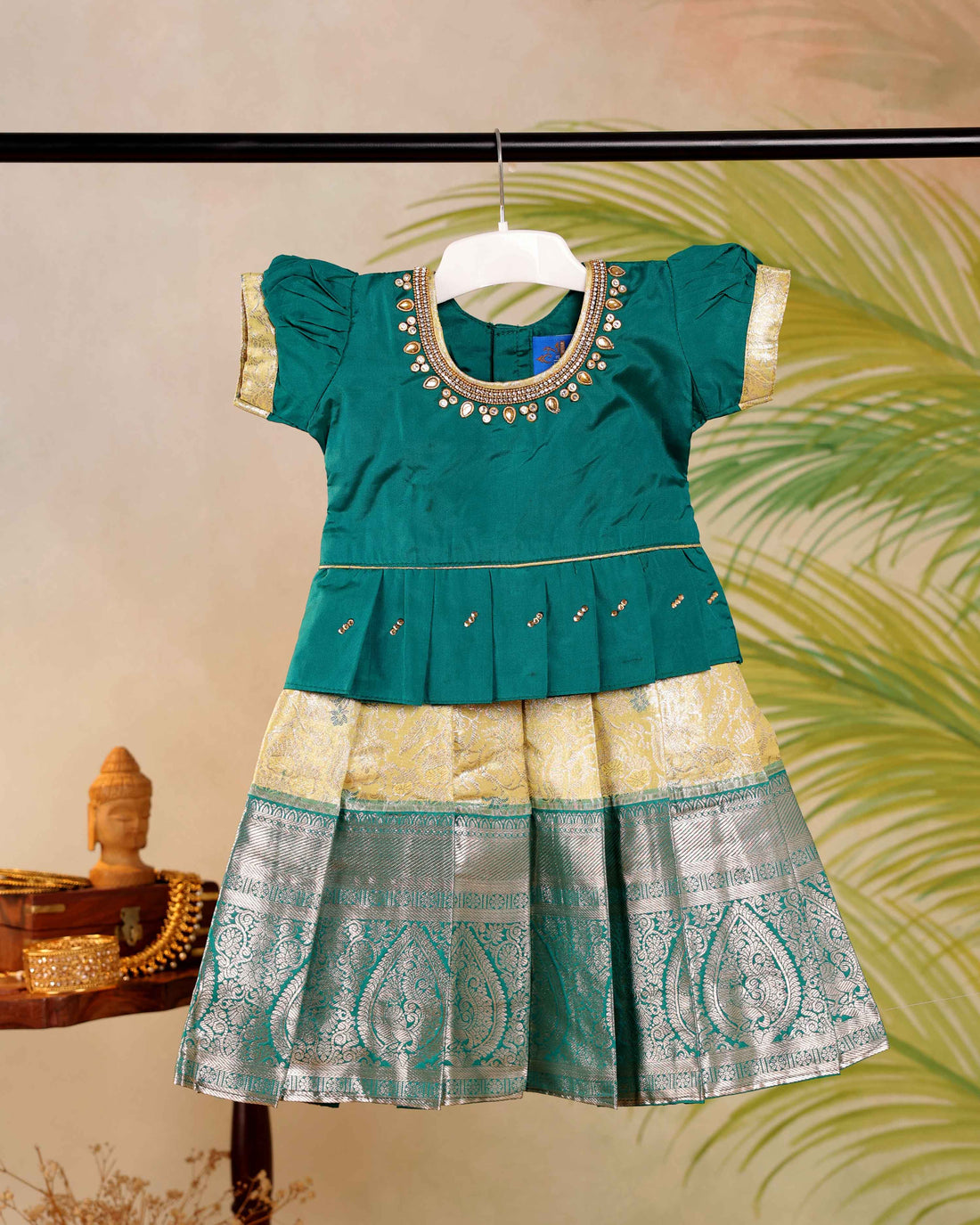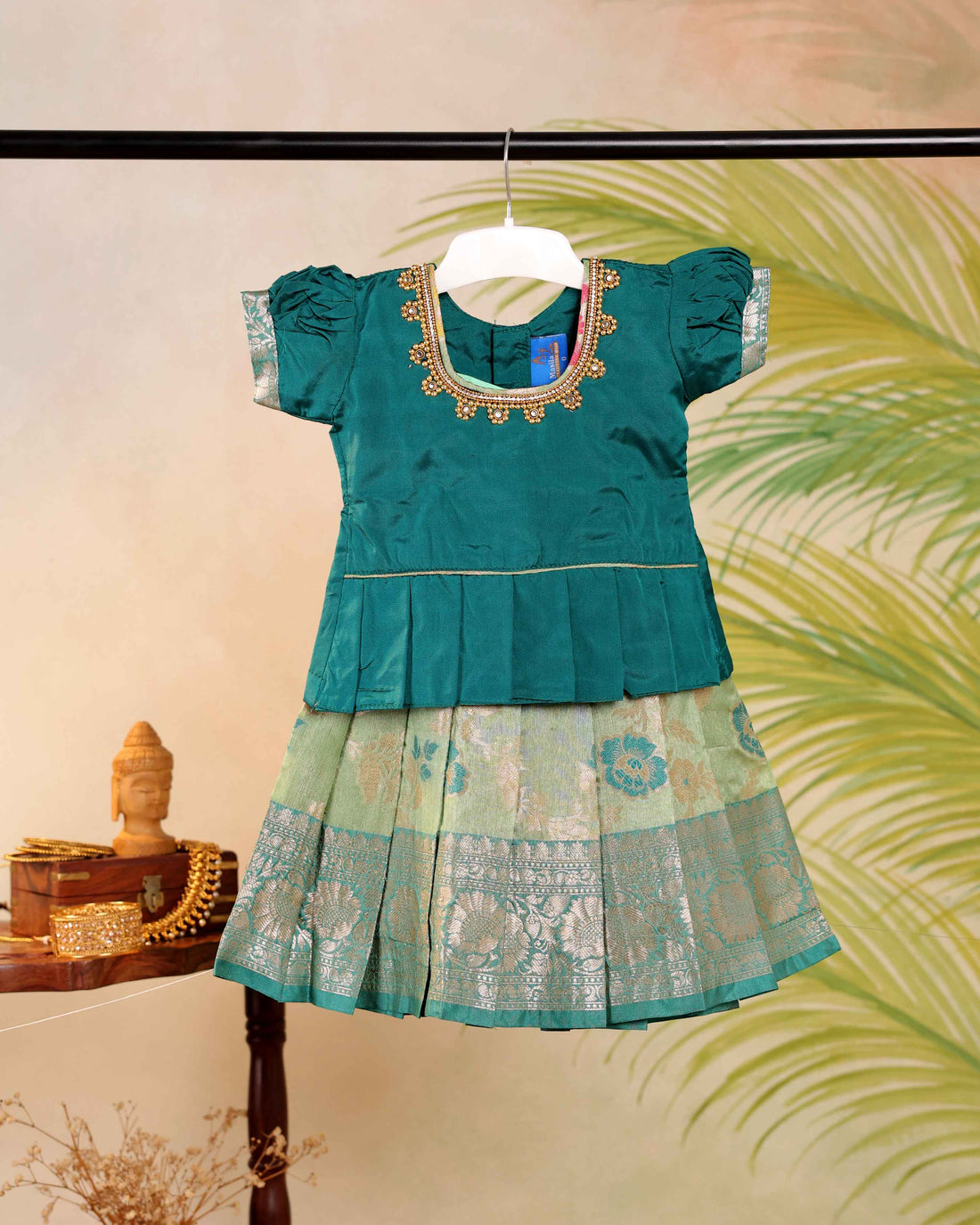 Product Type - Readymade Pattu PavadaiFabric - Art SilkColor - GreenPattern - SolidDesign - SolidNeck...