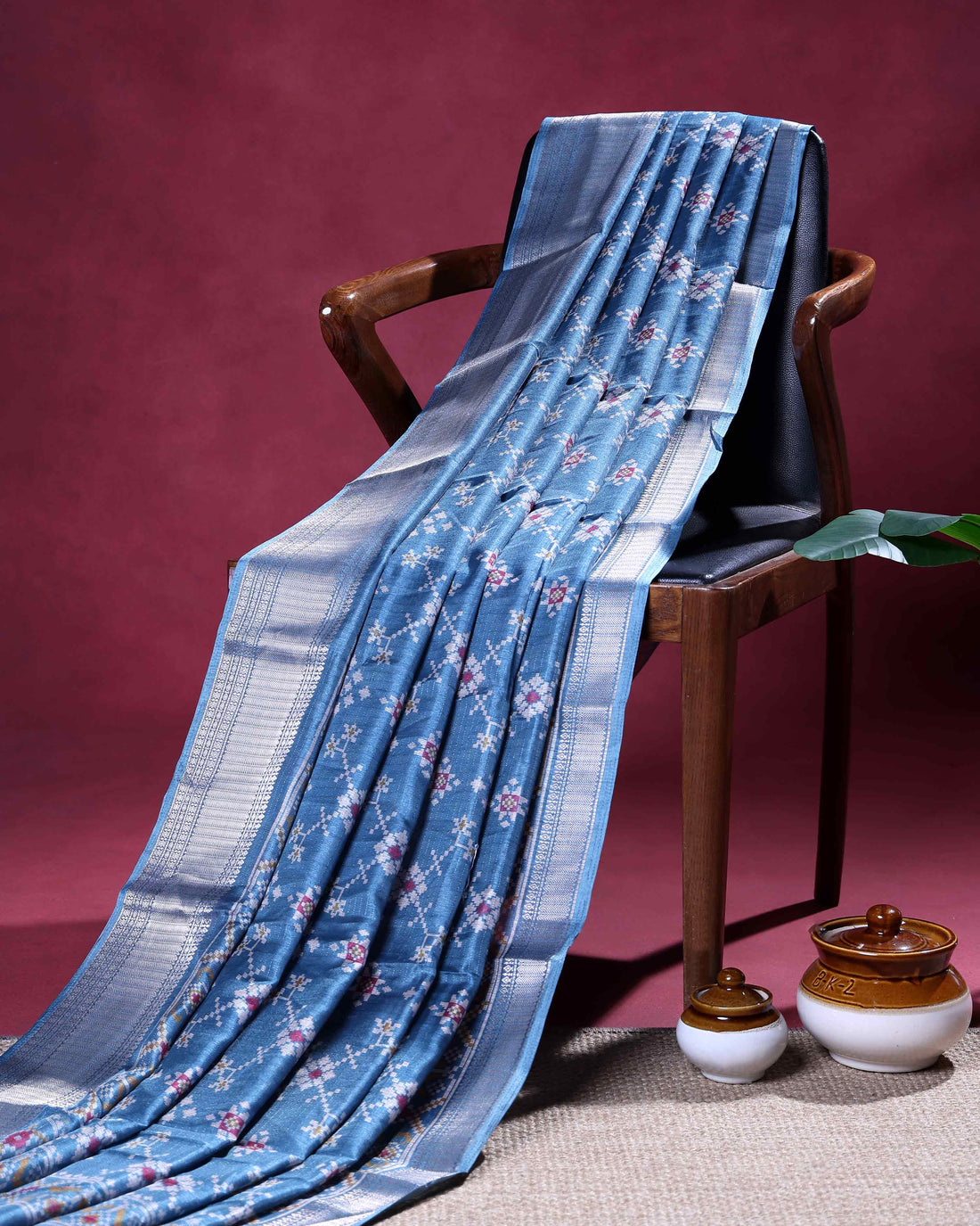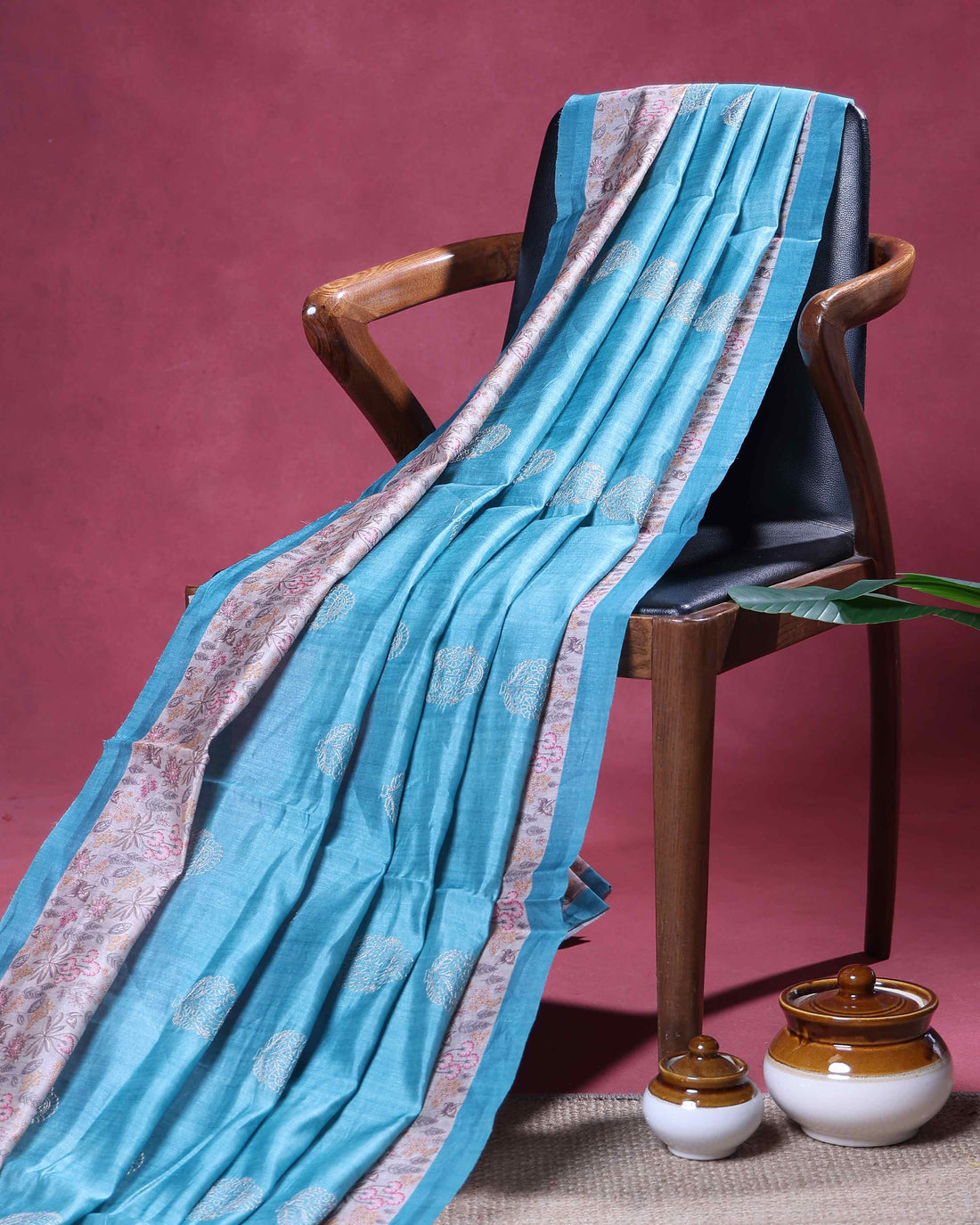 Elegant Semi Tussar Kalamkari Inspired Knot Work Saree with a Classic Self Border - Blue