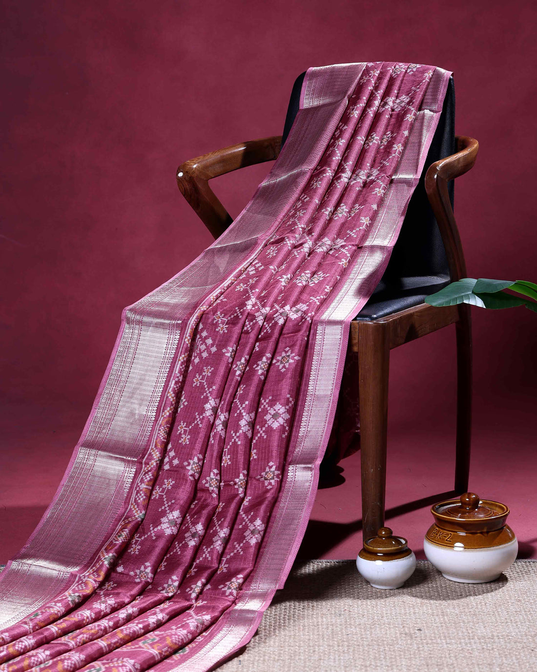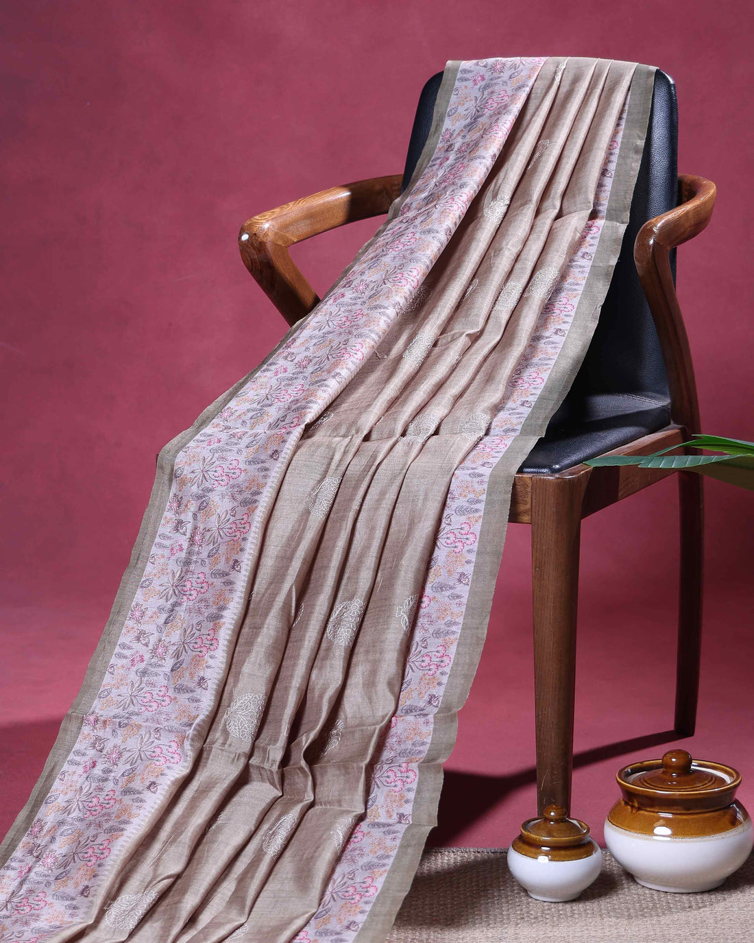 Elegant Semi Tussar Floral Embroided Saree with a Classic Self Floral Border - Pink