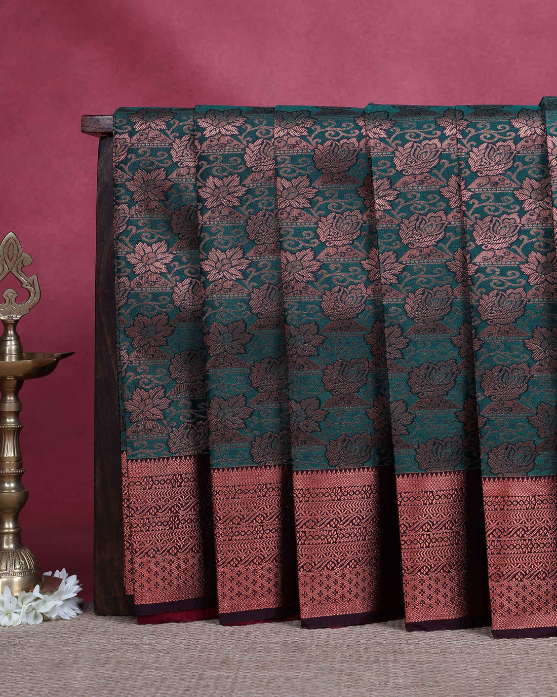 Traditional Paithani Saree with Traditional Lotus Motifs and Rich Zari Woven Border - Bottle Green