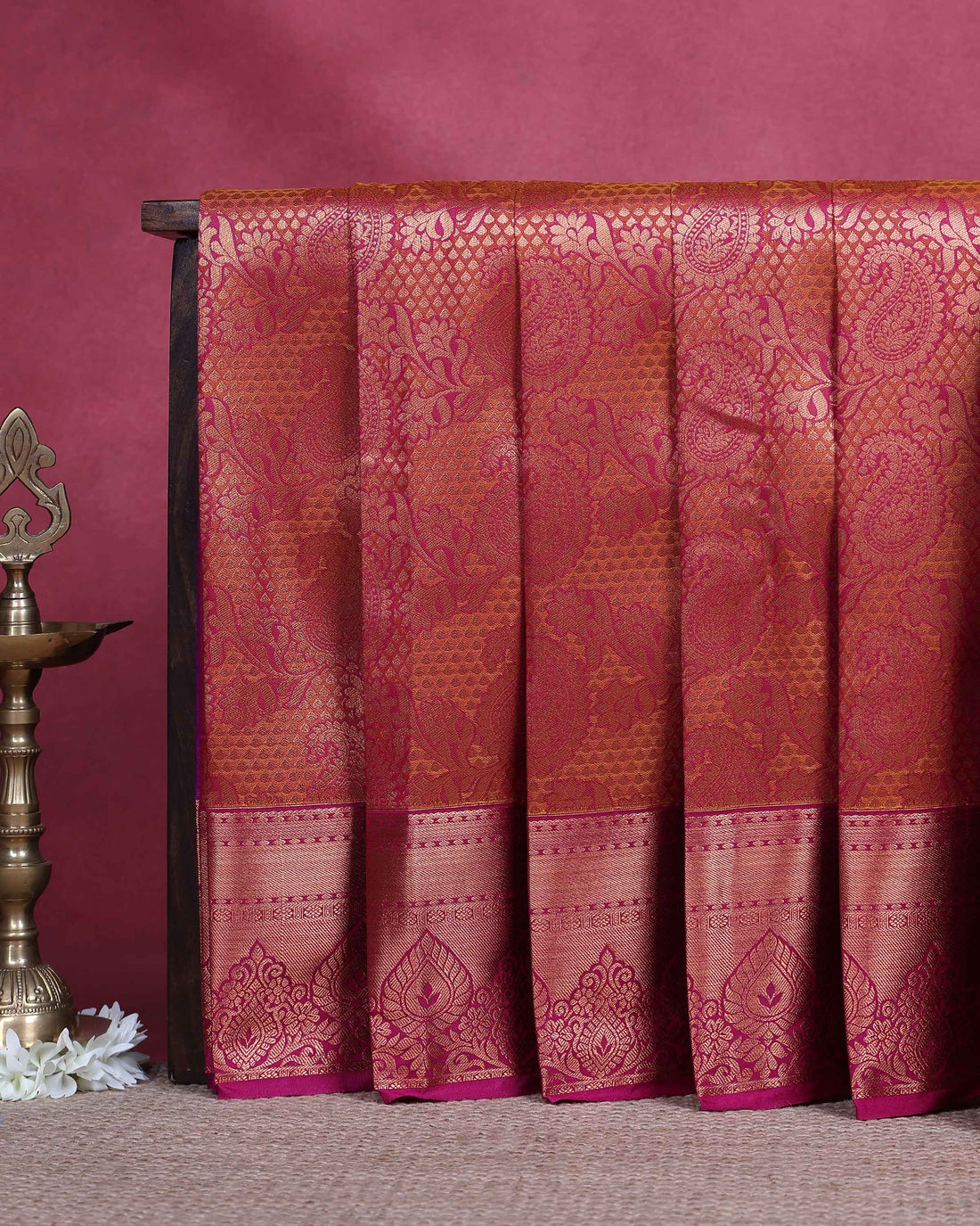 Traditional Kids Pattu Pavadai Material with All Over Zari Buttas and Rich Woven Border - Rani Pink