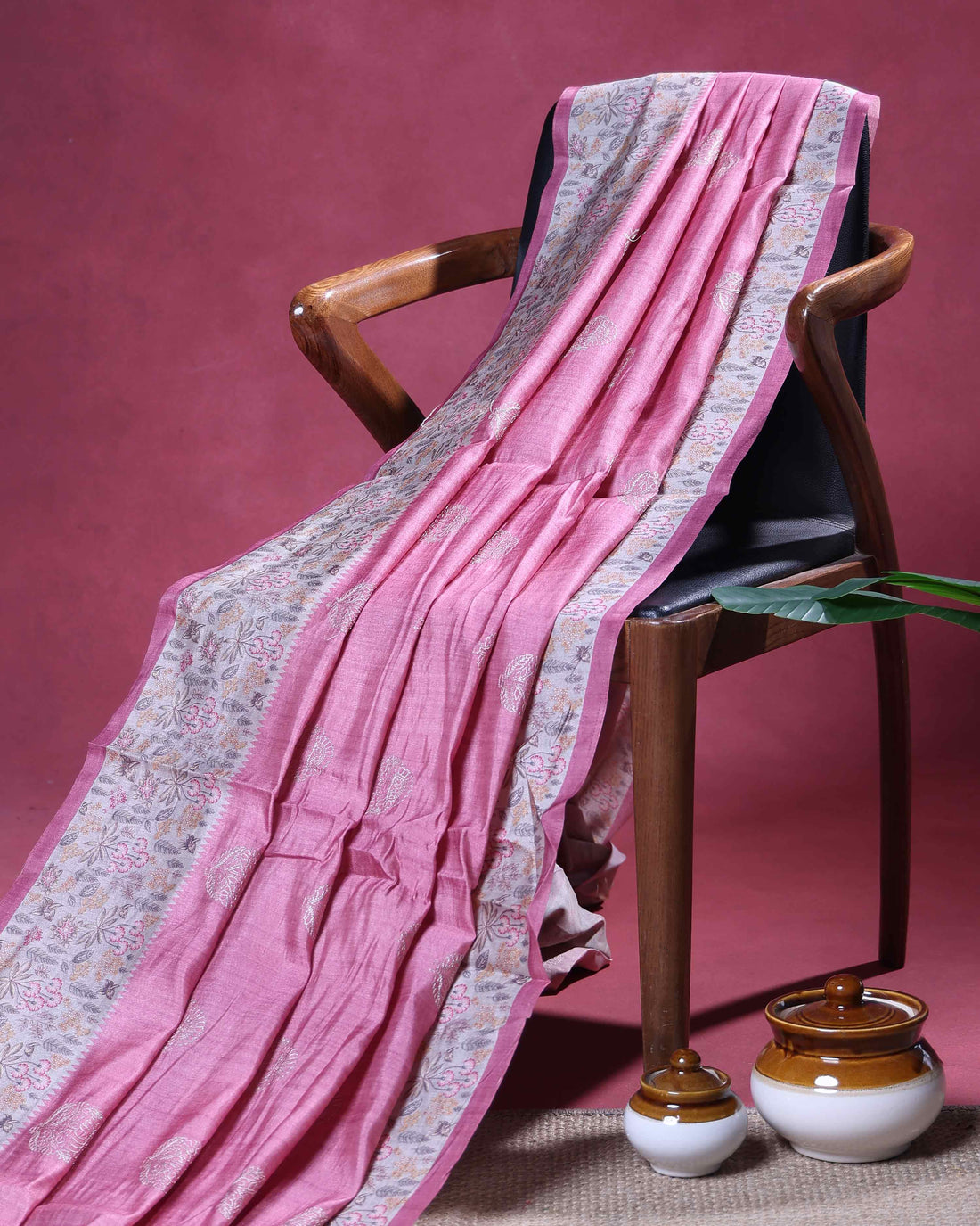 Elegant Semi Tussar Kalamkari Inspired Knot Work Saree with a Classic Self Border - Pink