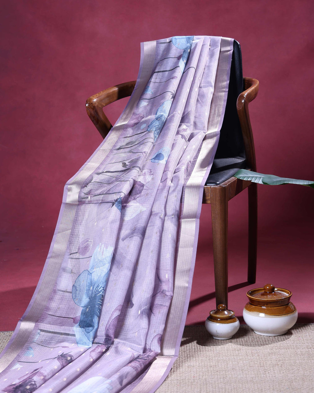 Traditional Kids Pattu Pavadai Material with All Over Floral Zari Weaving and Designer Border - Purple