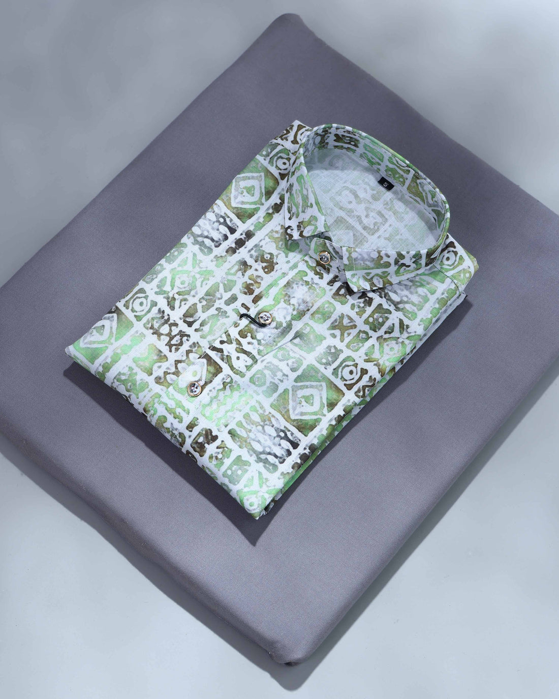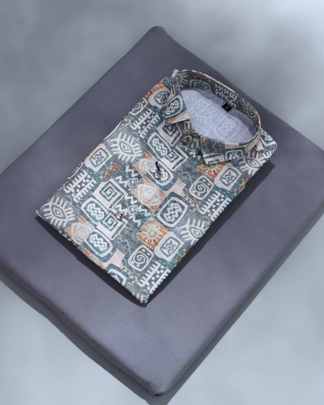 Boys Premium Abstract Geometric Printed Full Sleeve Button-Down Shirt with Classic Collar - Multi