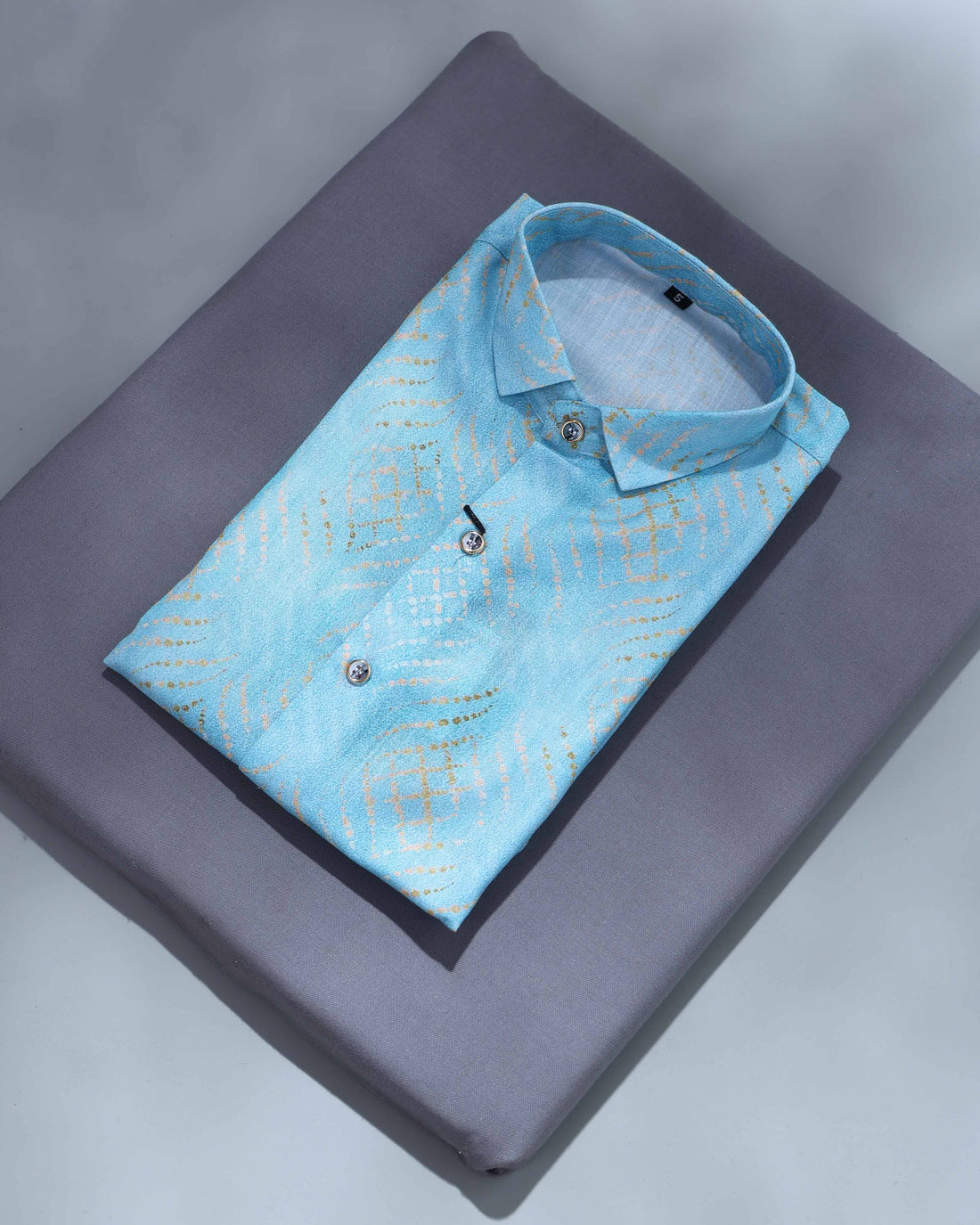 Boys Premium Jacquard Patterned Full Sleeve Button Down Shirt with Elegant Geometric Weave Design - Blue