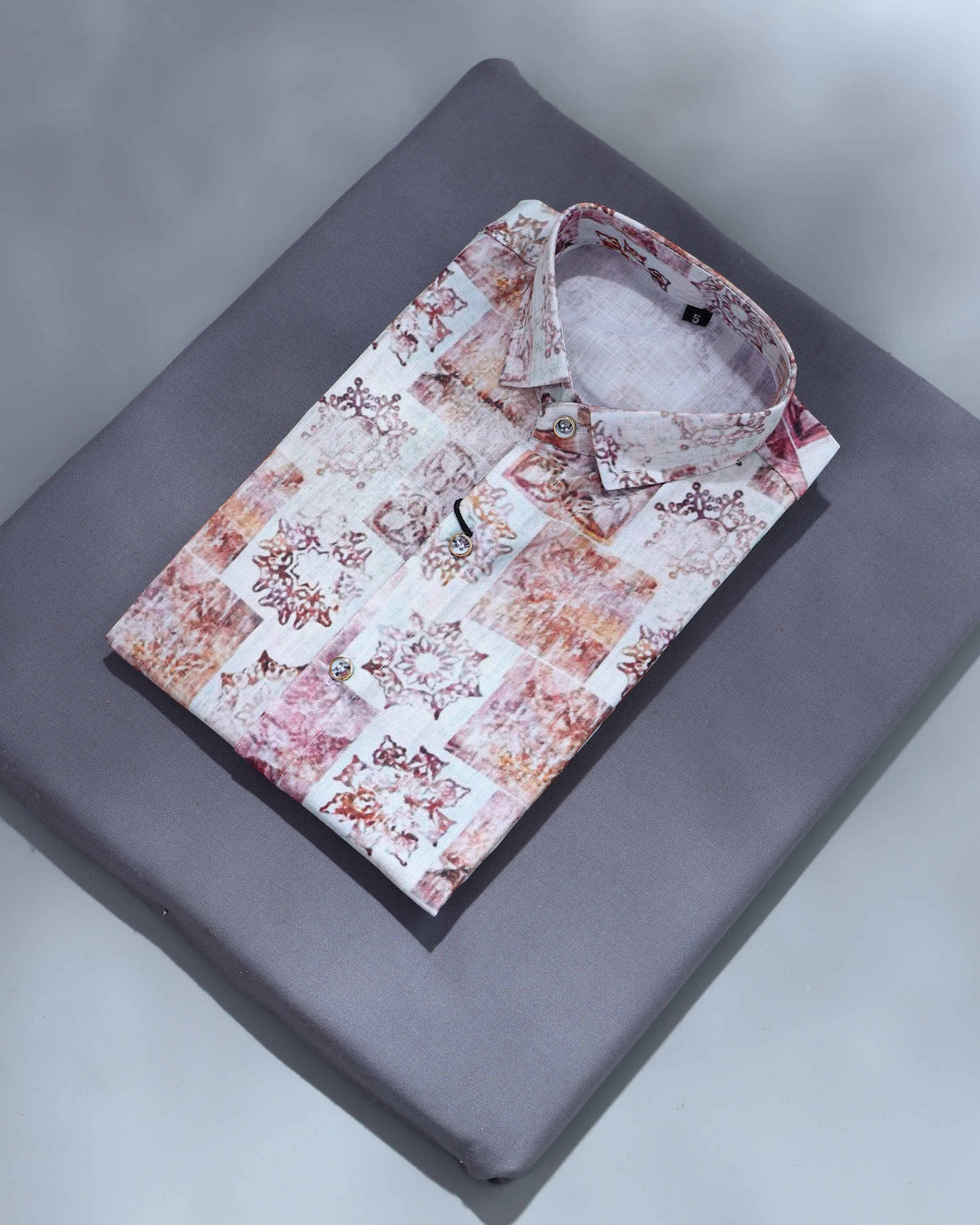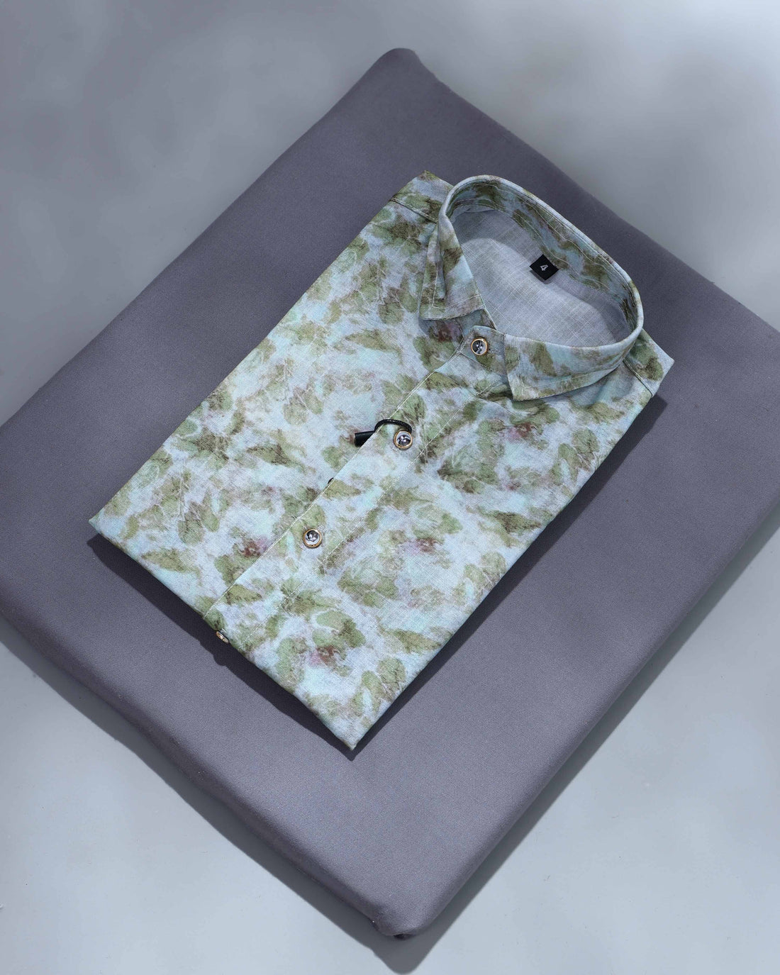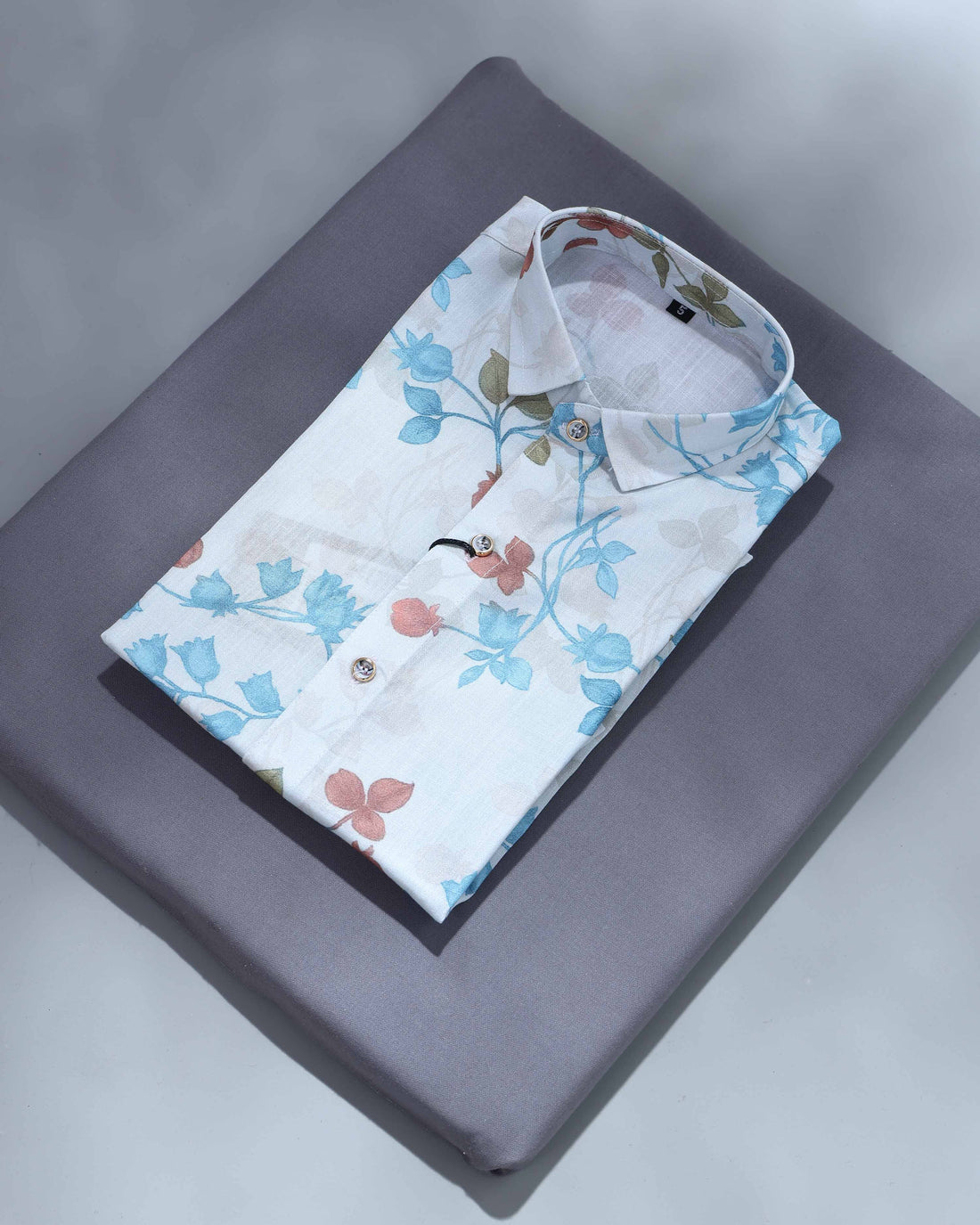 Stylish Boys Floral Printed Casual Shirt with Full Sleeves Button Down Front and Classic Spread Collar - White