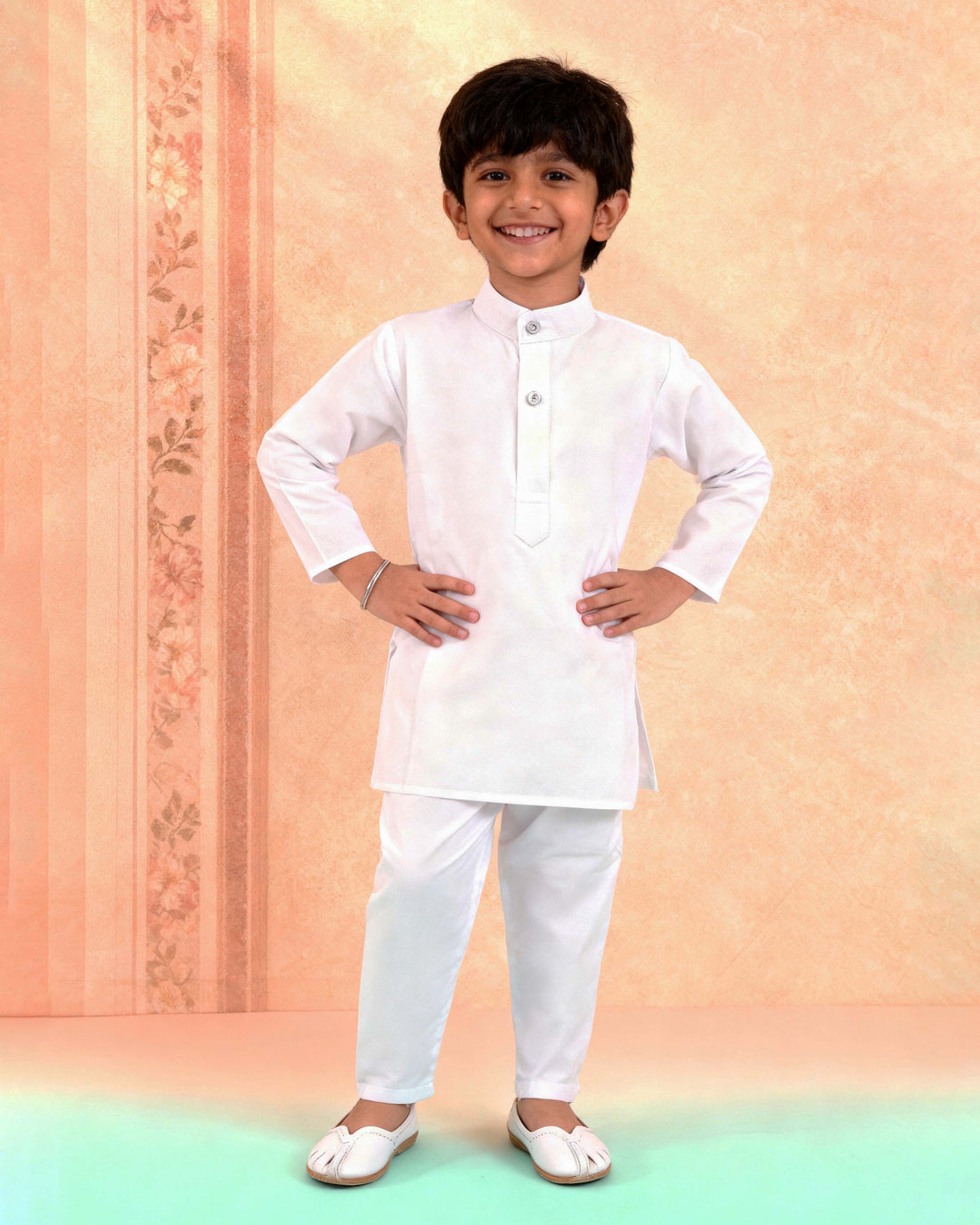 Boys Festive Kurta Set with Mandarin Collar -White