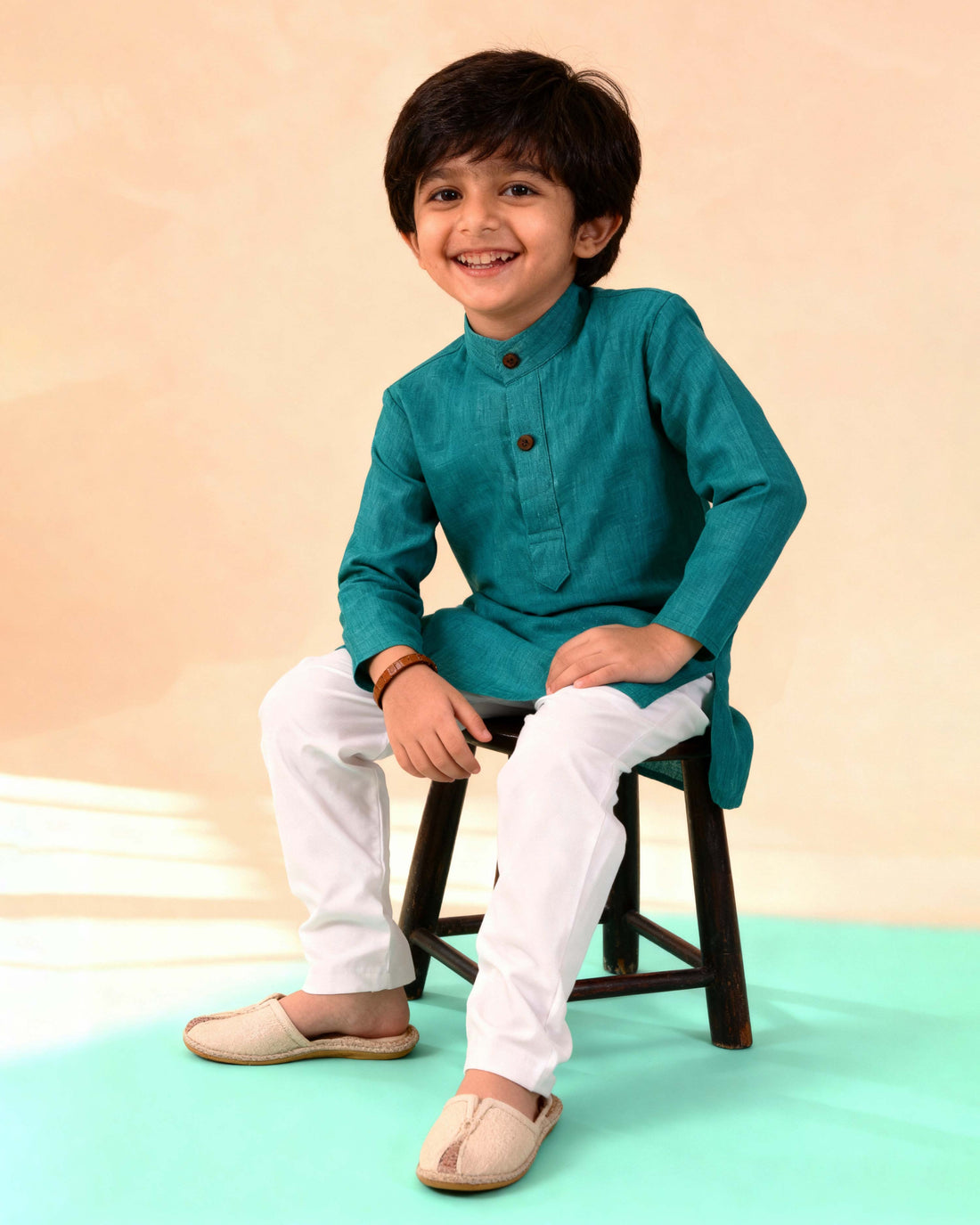 Boys Festive Kurta Set with Mandarin Collar -Teal