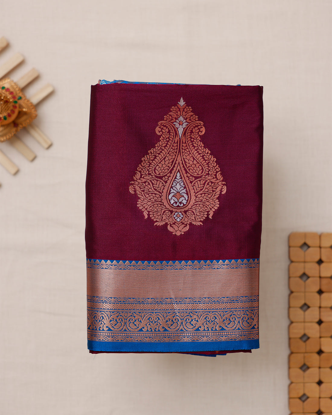 Ethnic Thread Design Soft Silk Saree - Maroon
