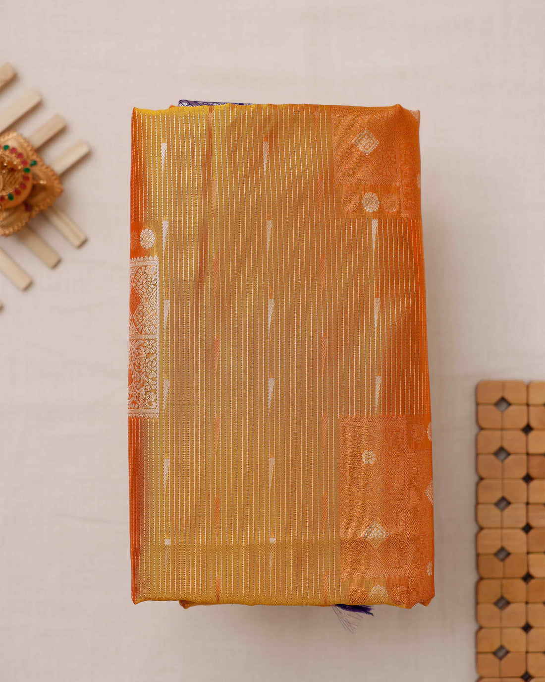 Ethnic Striped Design Soft Silk Saree - Yellow