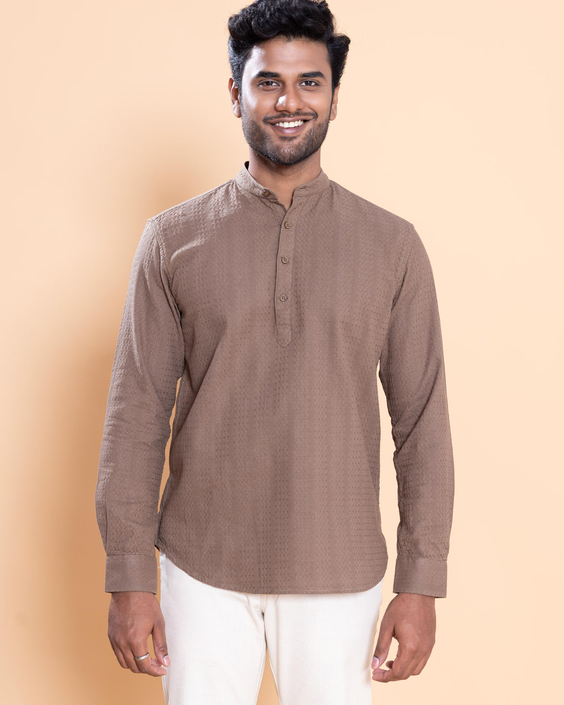 Nativebull Men Textured Half Sleeve Cotton Blend Shirt - Brown