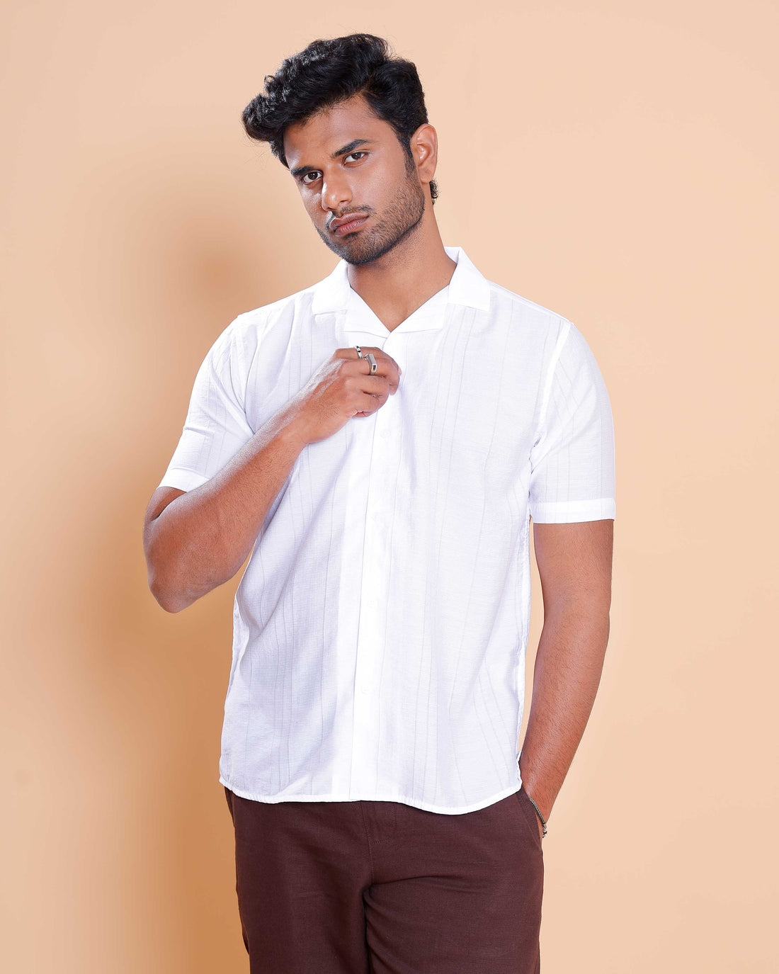 Nativebull Men Textured Half Sleeve Cotton Blend Shirt - White