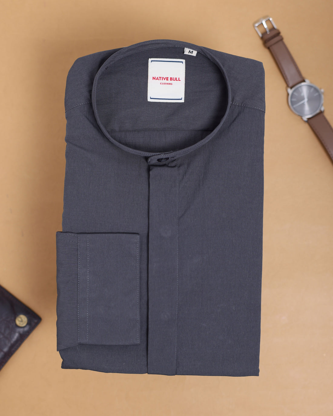 Native Bull Men's Solid Mandarin Collar Casual Shirt and Full Sleeves - Grey