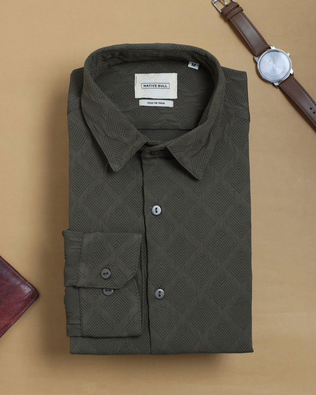 Men's Nativebull Textured Casual Shirt with Cutaway Collar and Full Sleeves - Green