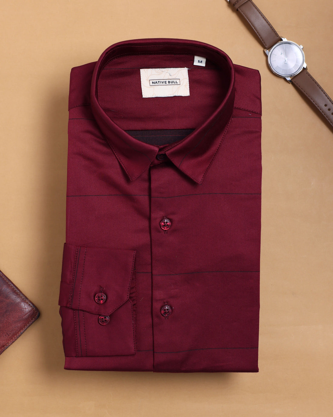 Men's Nativebull Solid Slim Fit Casual Shirt with Spread Collar and Full Sleeves - Maroon