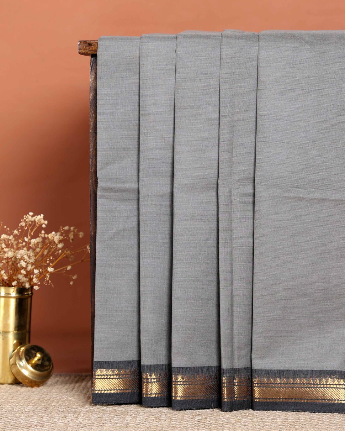 Traditional Handloom Chettinad Cotton Saree with Contrast Zari Border - Grey