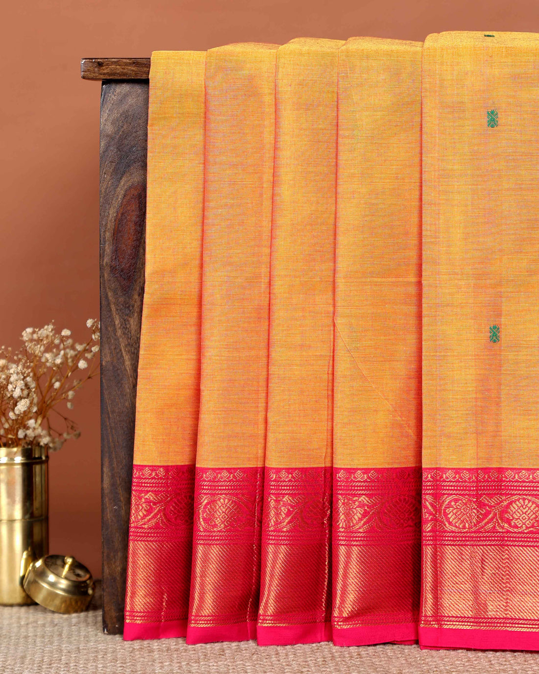 Traditional Handloom Chettinad Cotton Saree with Zari Woven Temple Border and Elegant Butta Motifs - Orange