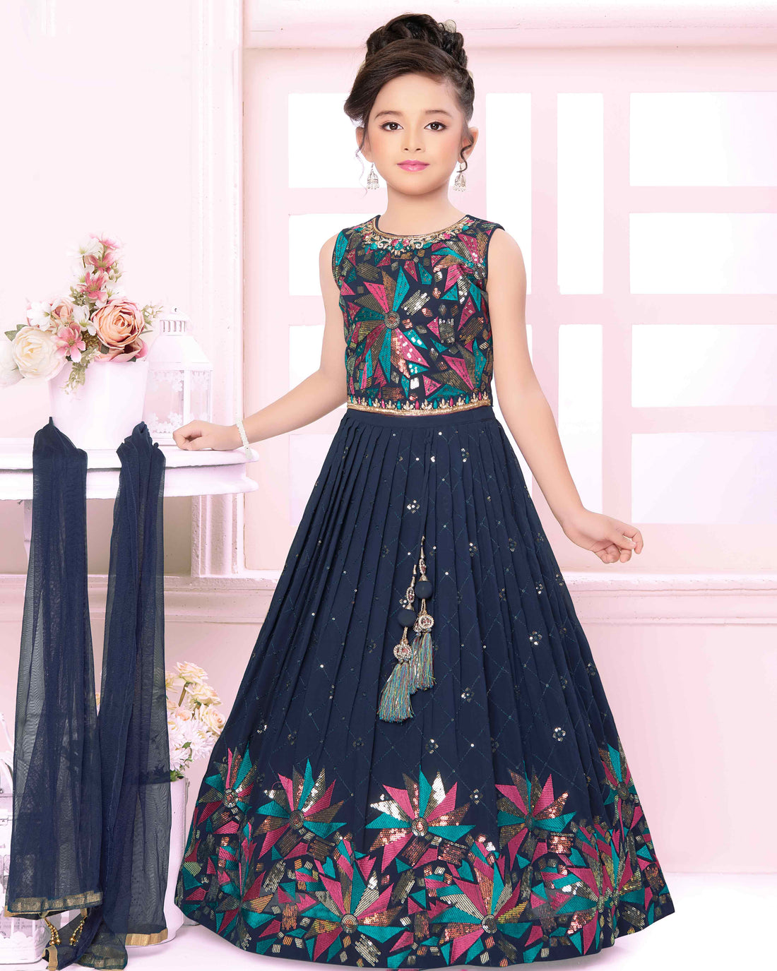 Girls Readymade Georgette Lehenga Choli with Sequin Work - Navy Blue