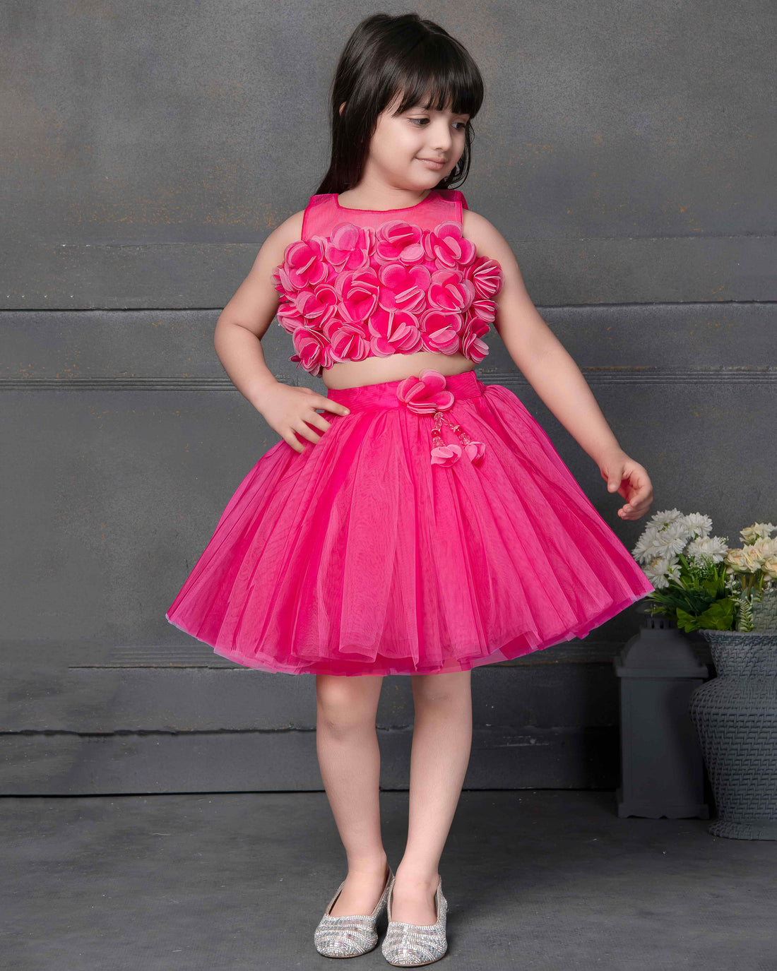 Girl's Designer Choli & Skirt Set with Intricate Embellishments - Pink