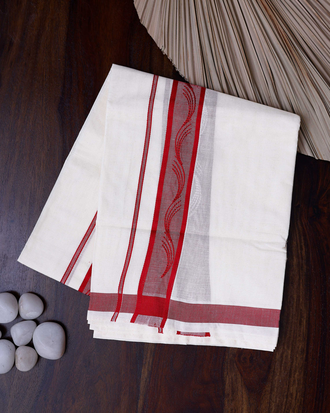 Men's Traditional Handwoven Cotton Dhoti with Red Border and Elegant Finish - White