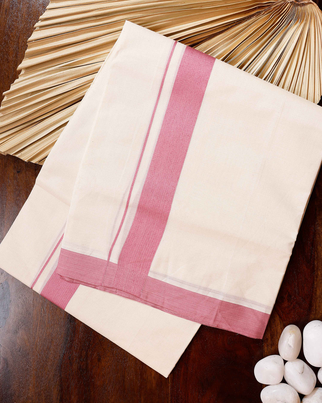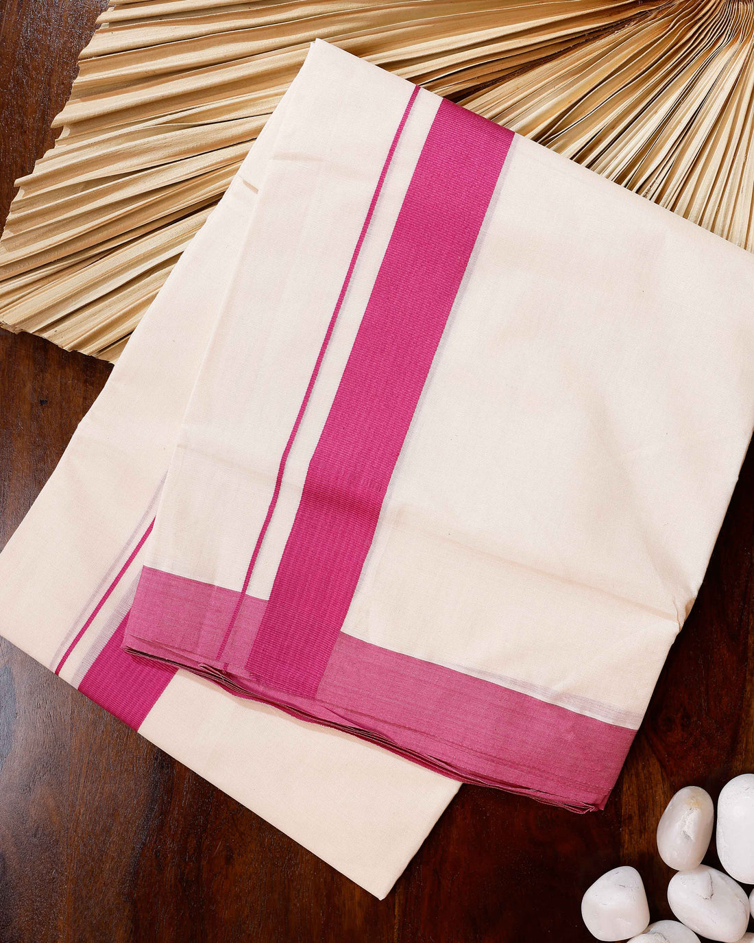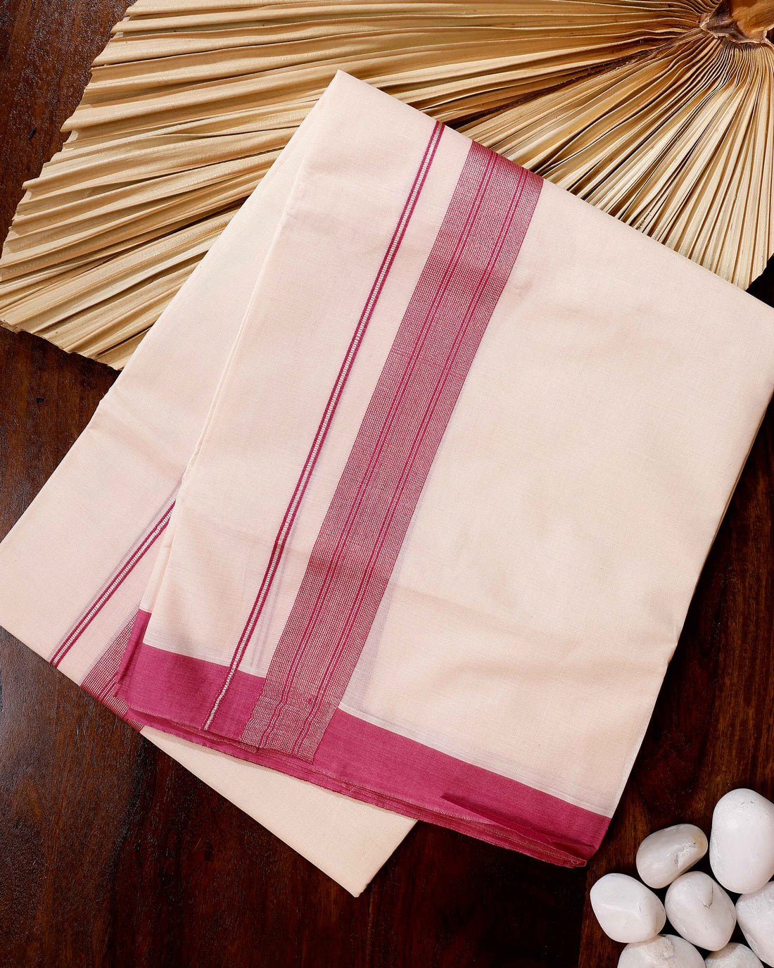 Traditional Handwoven Cotton Dhoti with Pink Border and Elegant Finish - Off White