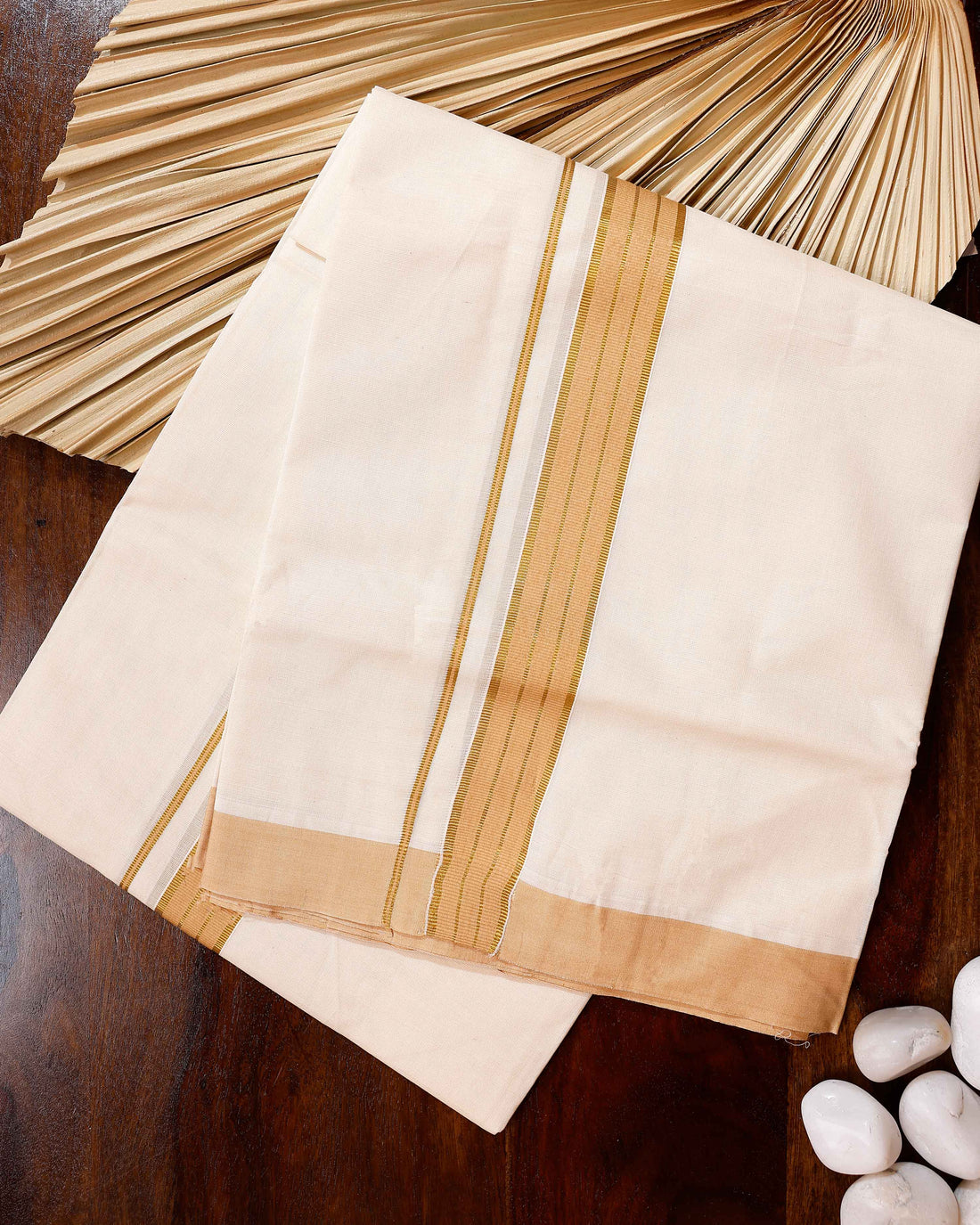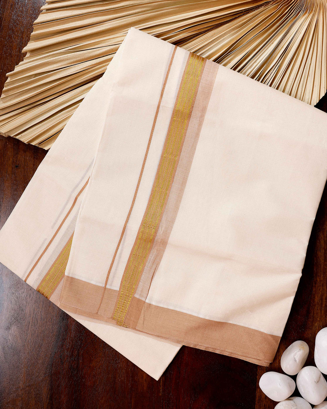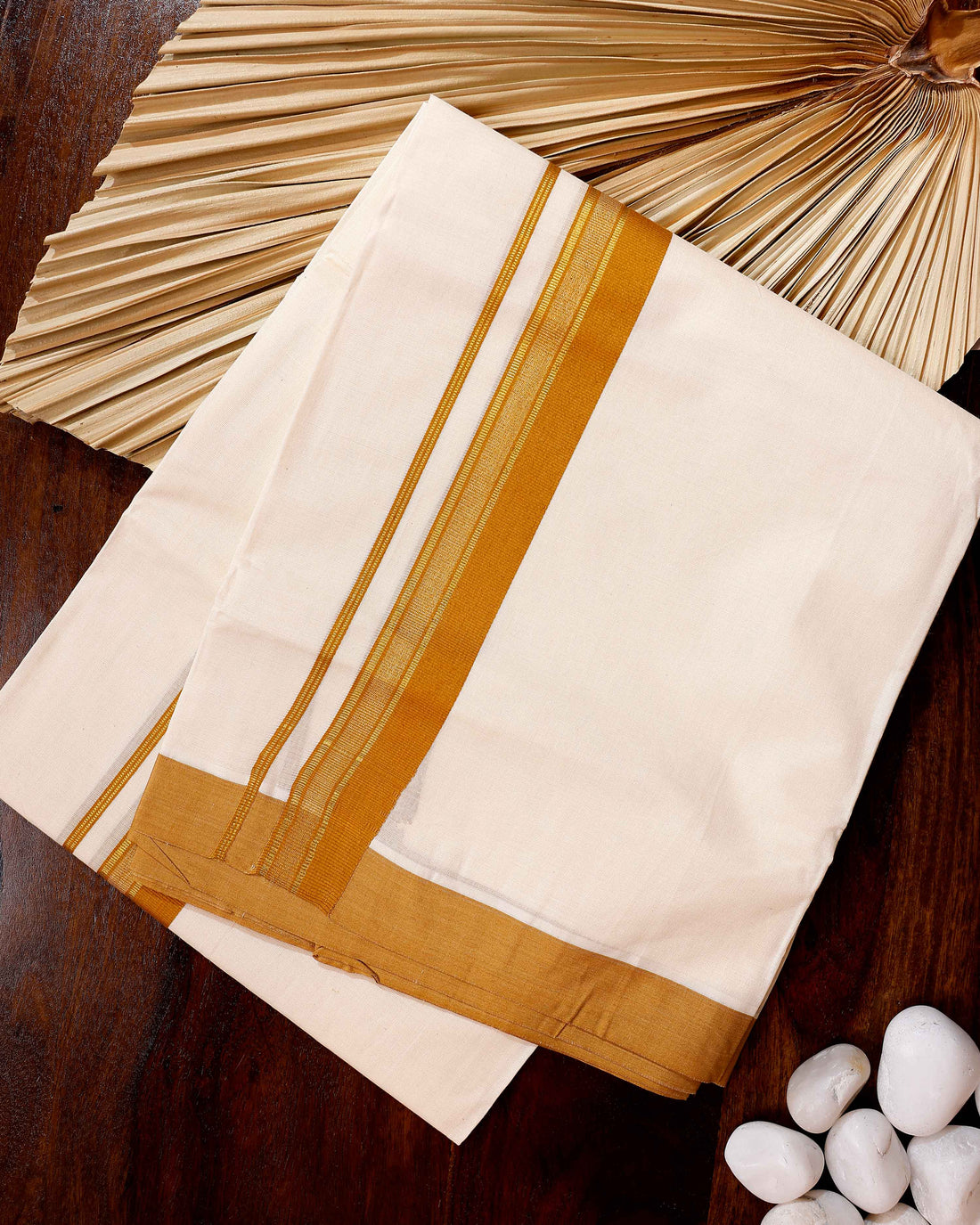 Traditional Handwoven Cotton Dhoti with Gold Border and Elegant Finish - Off White