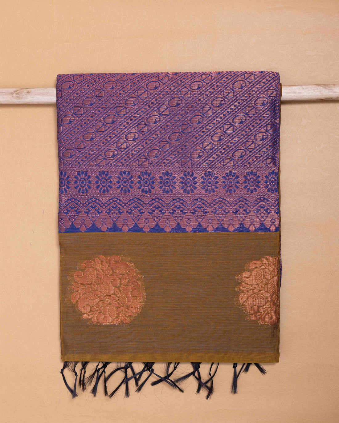 Woven Silk Cotton Saree with Zari Motifs - Mustard