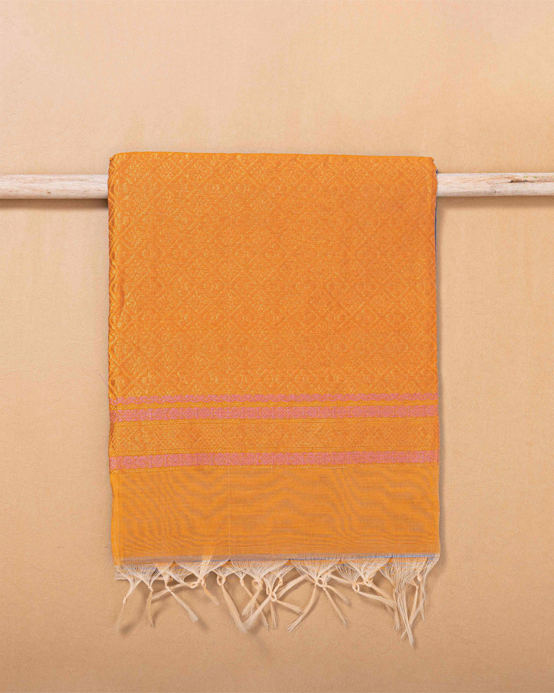 Handloom Cotton Saree with Checked Weave and Zari Border - Orange