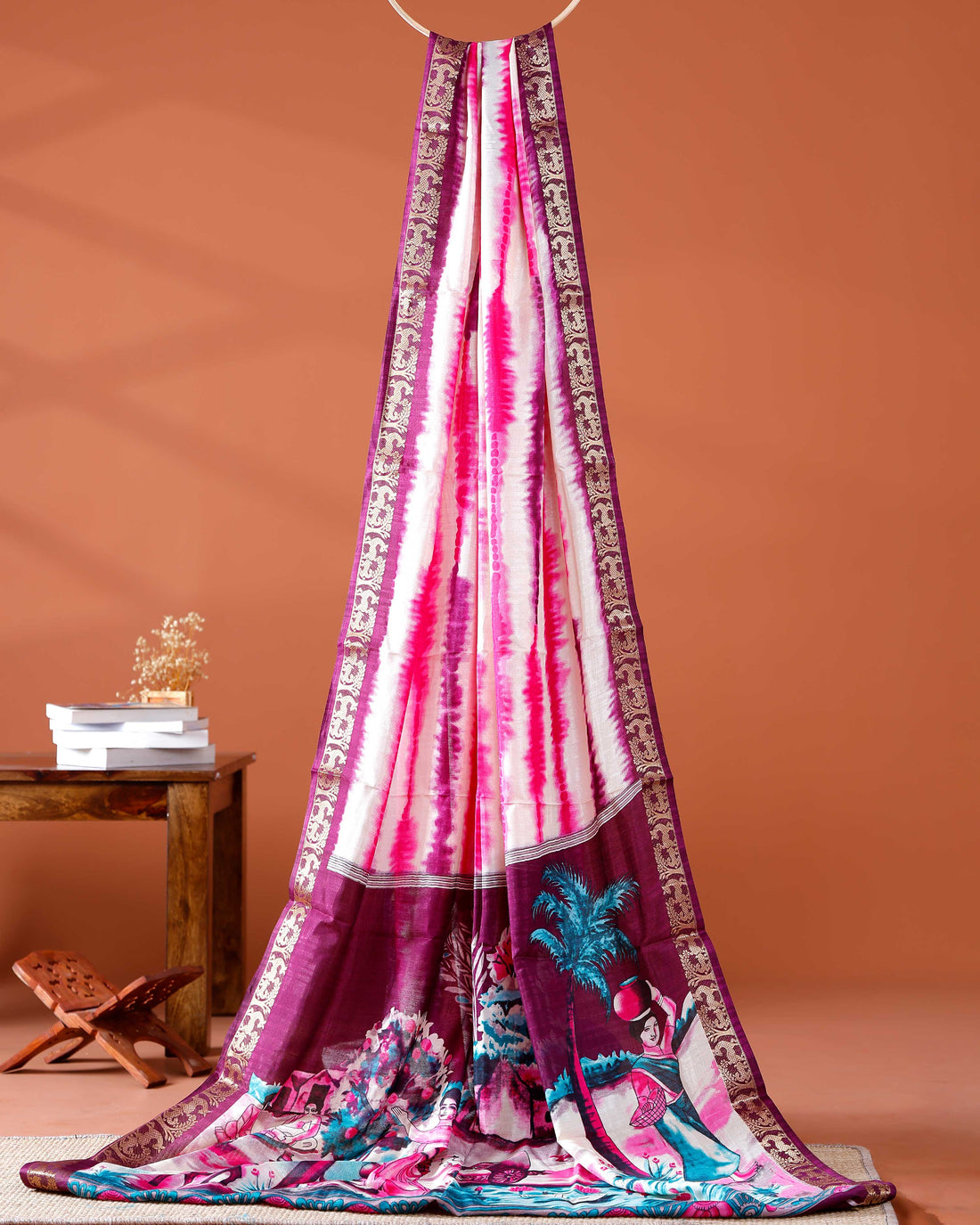 Elegant Pink shades and the rural scenic artwork Dola Saree