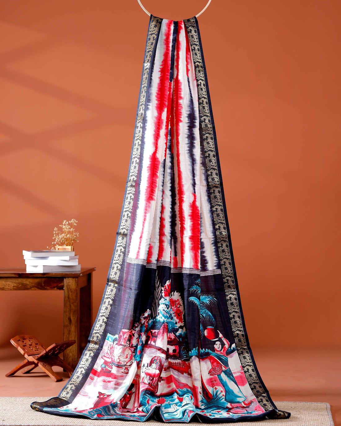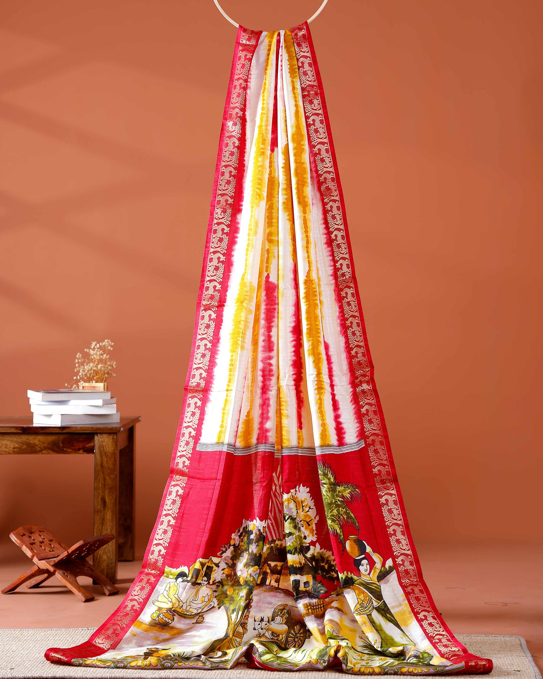 Elegant Red shades and the rural scenic artwork Dola Saree