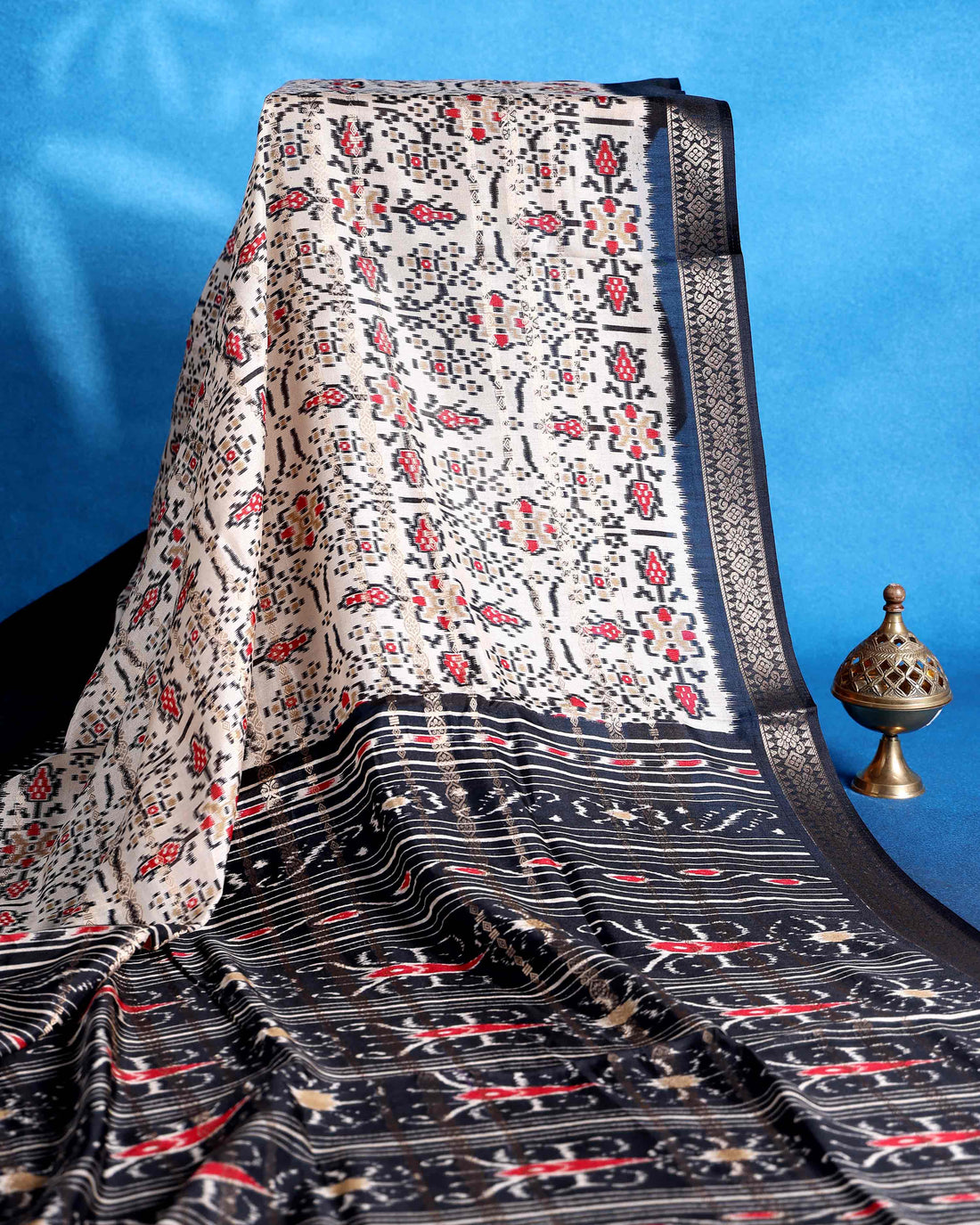 Traditional Dola Saree with All Over Pochampally Inspired Motifs and Elegant Zari Woven Border - Off White