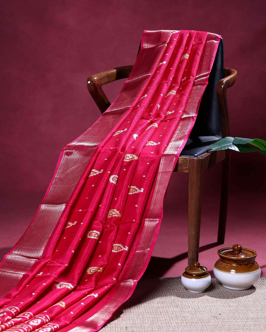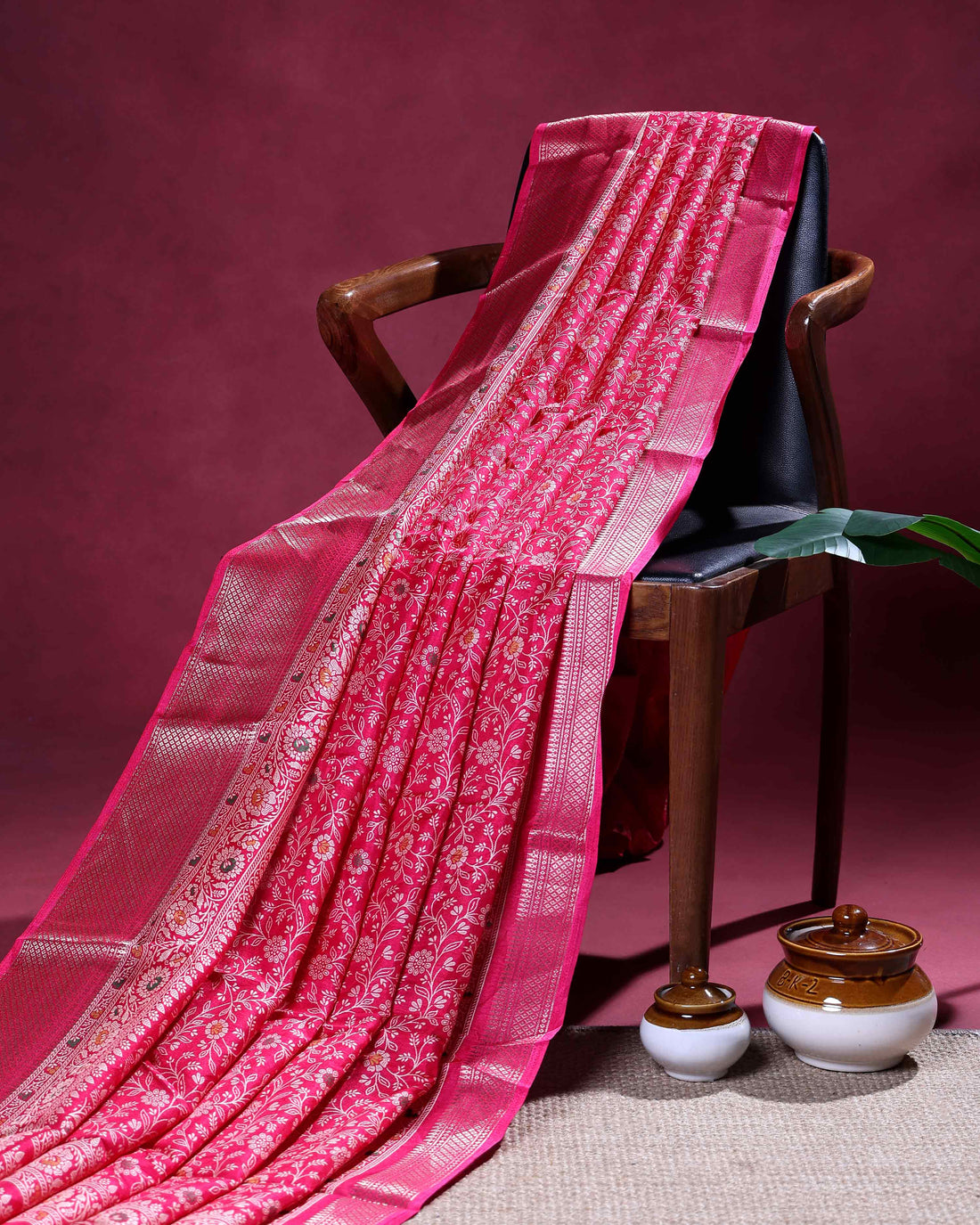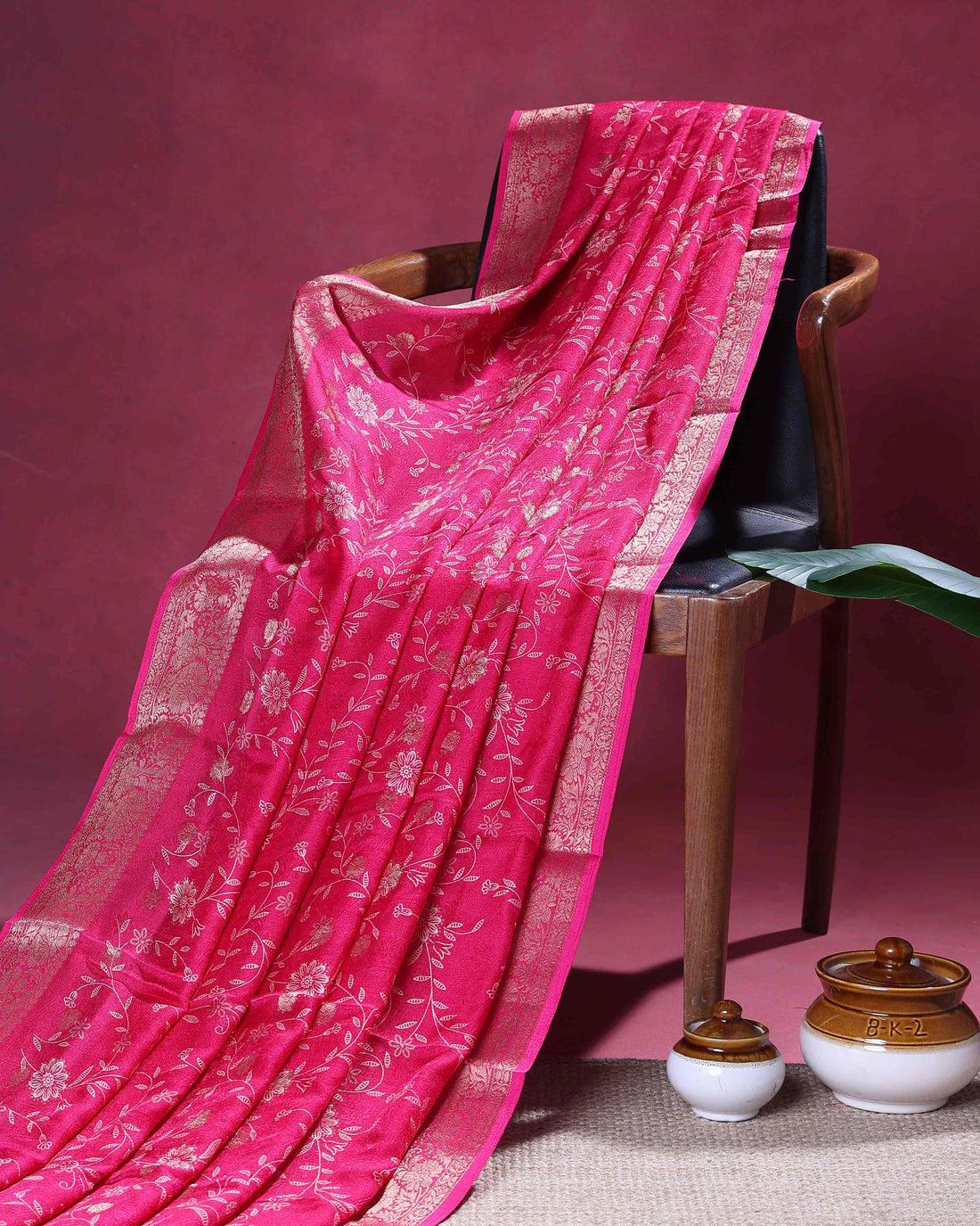 Elegant Dola Silk Saree with Subtle Traditional Butta Motifs and Rich Zari Woven Border - Rani Pink