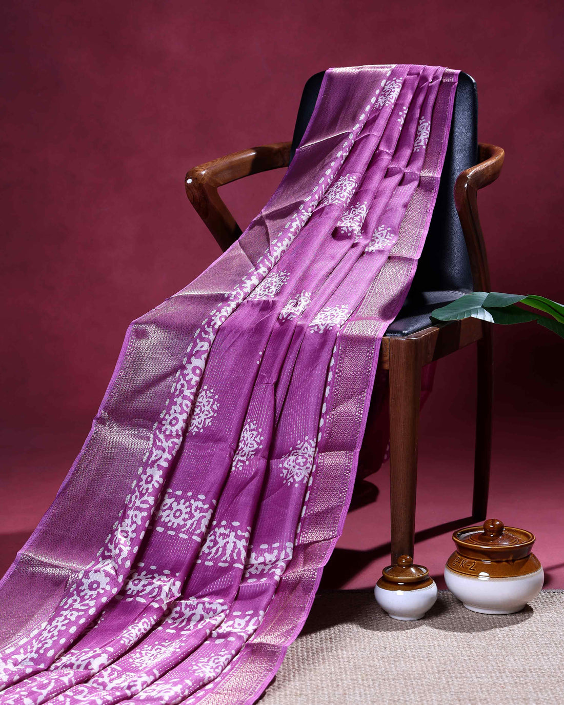 Elegant Dola Silk Saree with Intricate Woven Motifs Traditional Zari Border and Textured Pallu - Purple-