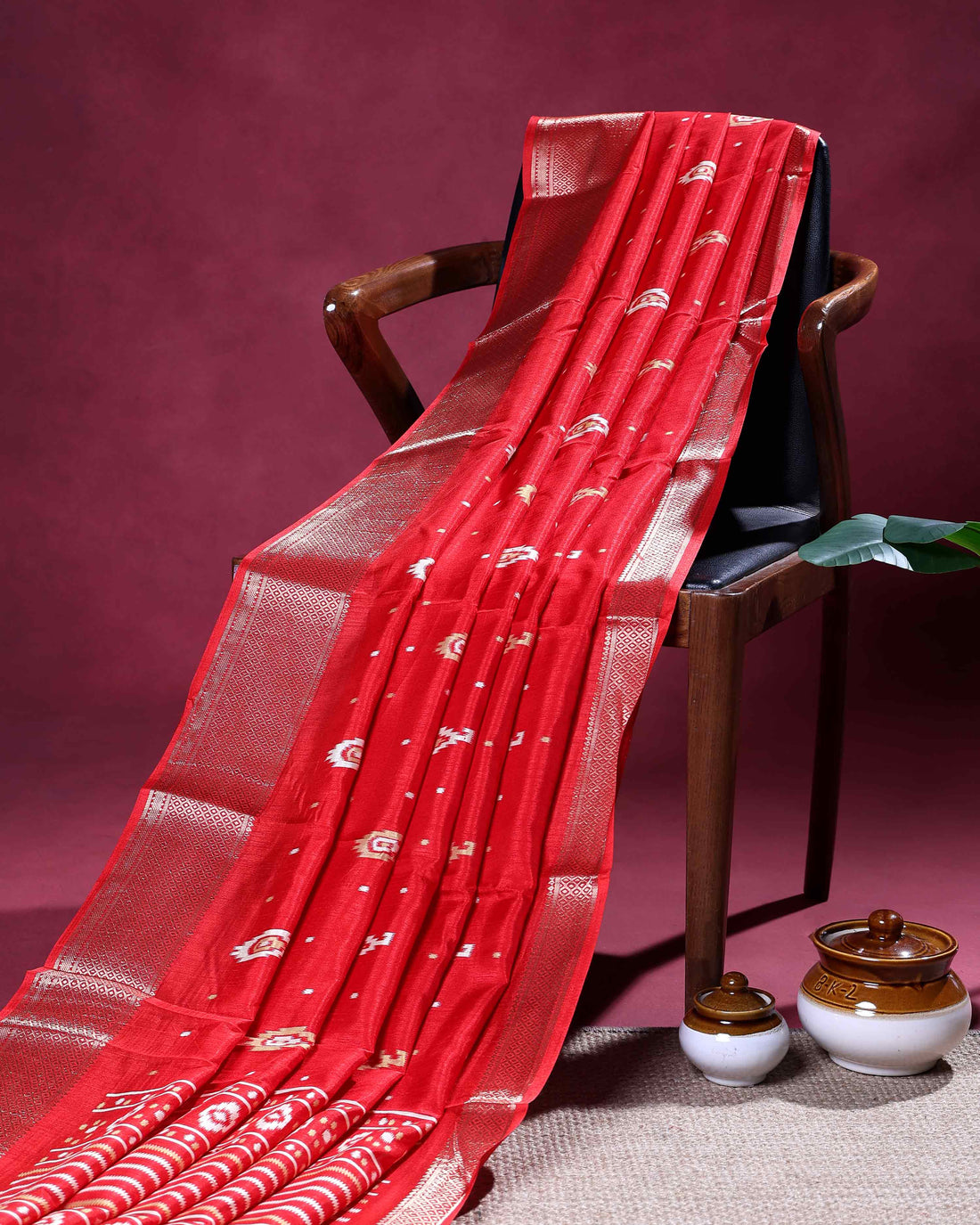 Elegant Dola Silk Saree with Subtle Traditional Butta Motifs and Rich Zari Woven Border - Red