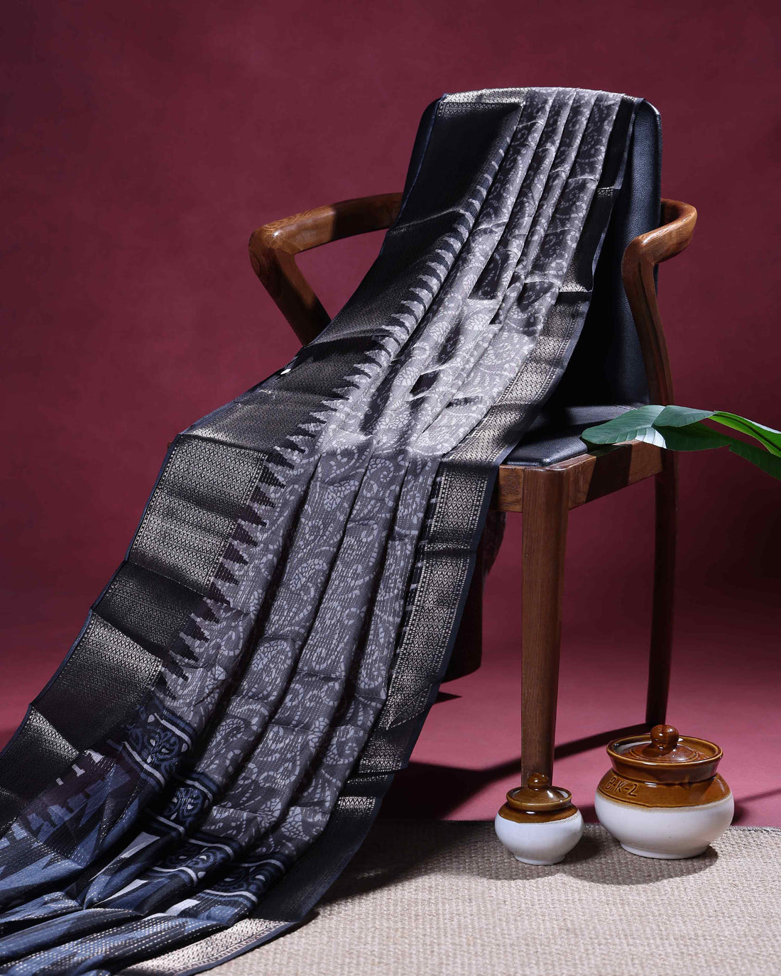 Elegant Dola Silk Saree with Intricate Traditional Motif Weaving and Rich Zari Woven Border with Textured Pallu - Grey