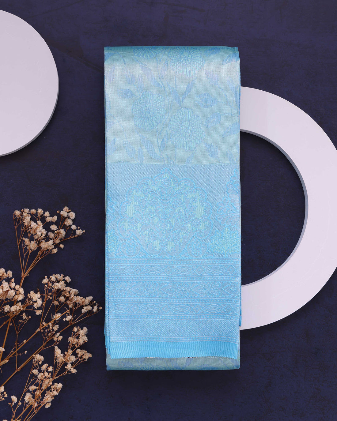 Elampillai Silk Cotton Saree with Floral Border Design - Blue