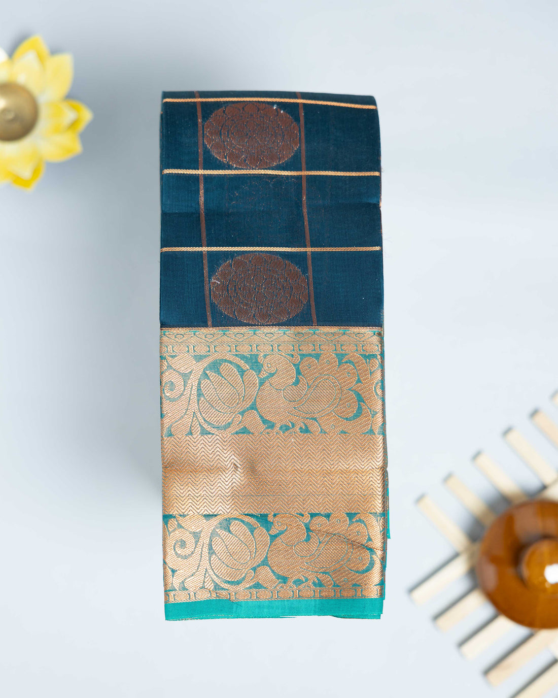 Elampillai Silk Cotton Saree with Traditional Checks and Zari Border - Teal