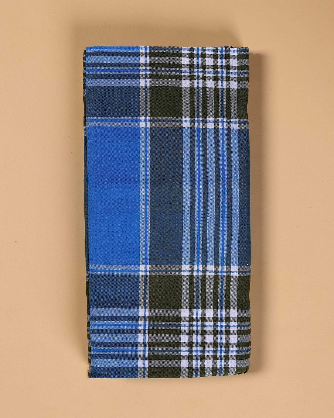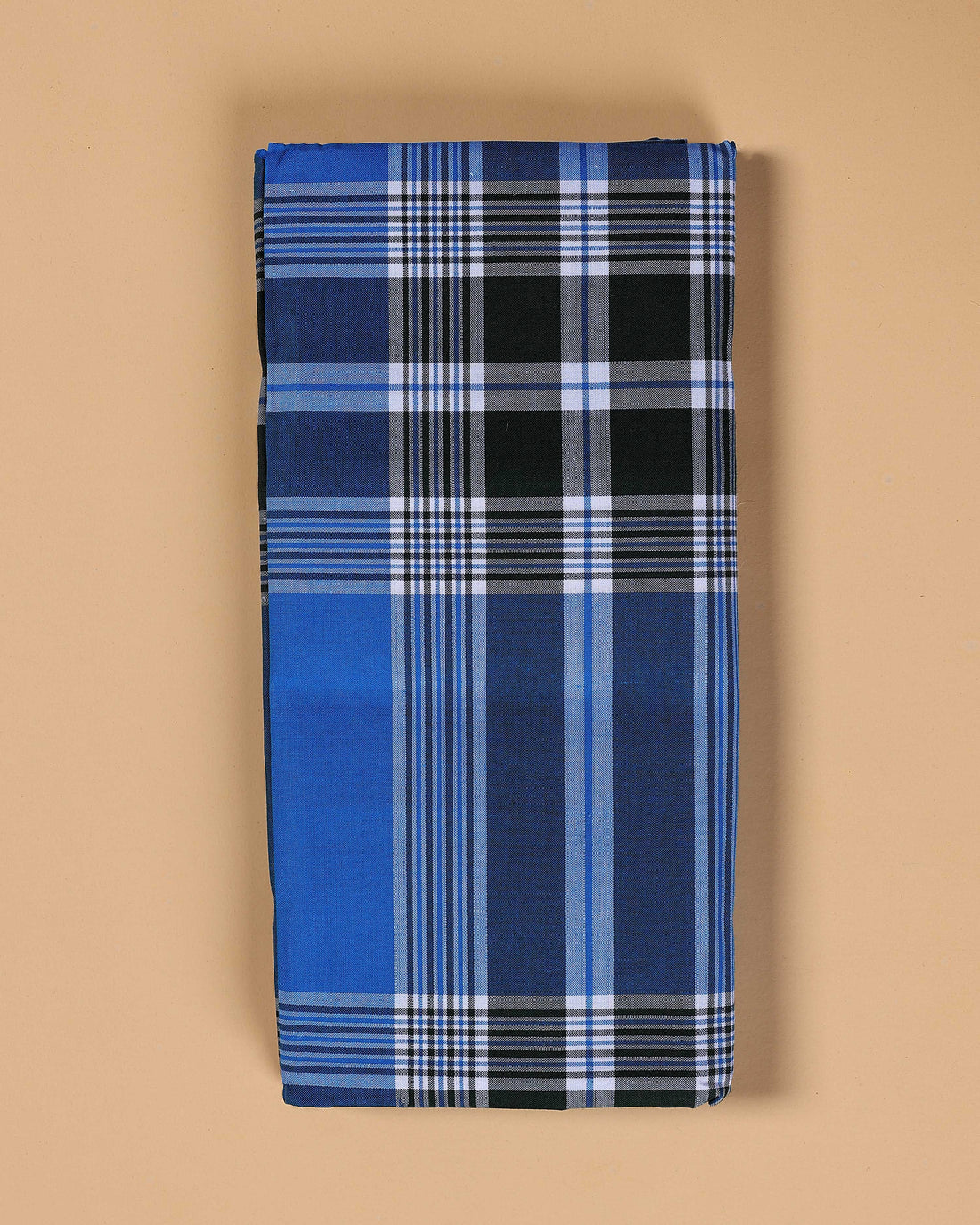 999 Brand Men's Premium Cotton Checked Lungi Stitched - Blue