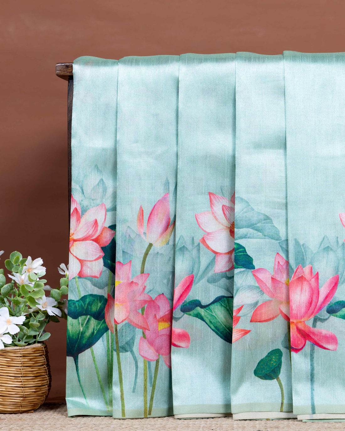 Printed Linen Cotton Saree with Floral Design - Lavender