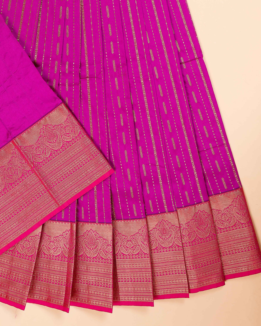 Product Type - Pattu Pavadai Material Fabric -Art SilkColor - PurplePattern - StripedOrnamentation - ZariWash Care...