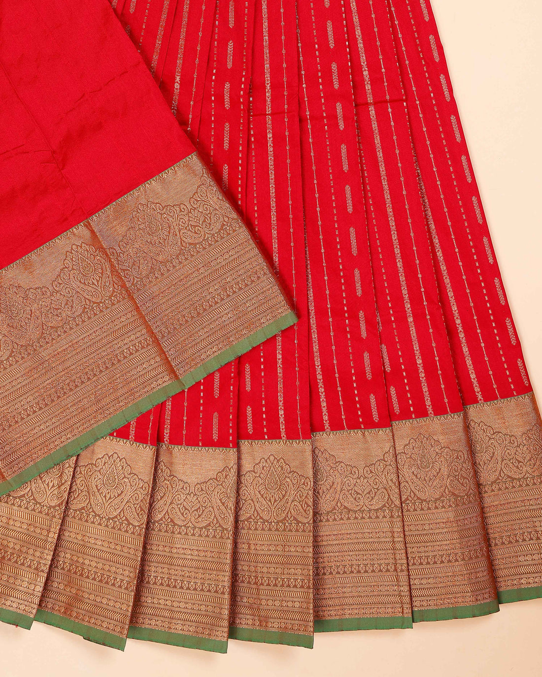 Traditional Pattu Pavadai Material with Zari Weave & Elaborate Border - Red