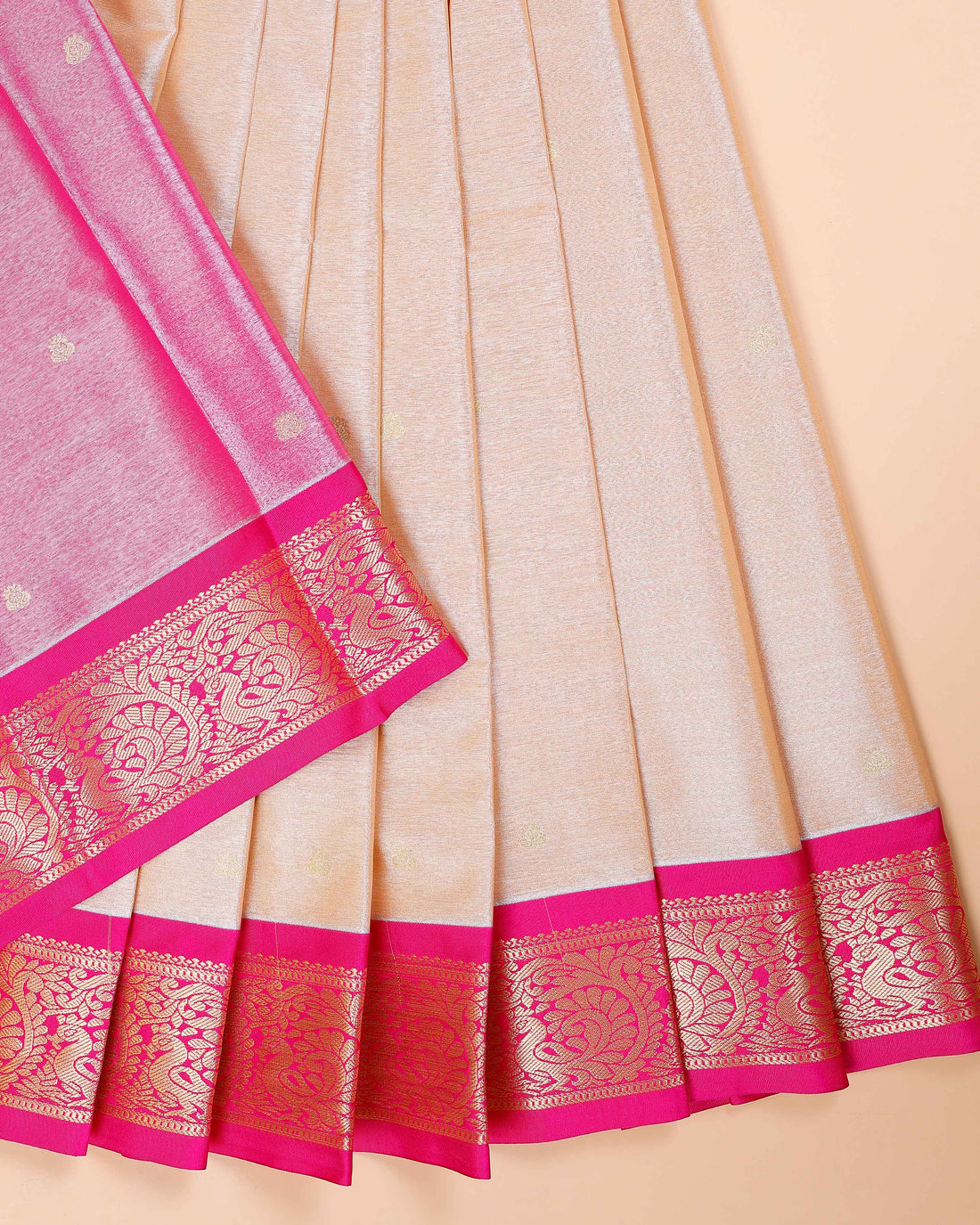 Traditional Kids Pattu Pavadai Material with Zari Motifs and Intricate Border - Pink