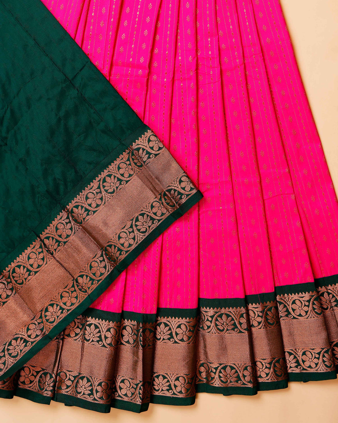 Traditional Kids' Pattu Pavadai with Intricate Zari Border & Buttas - Pink