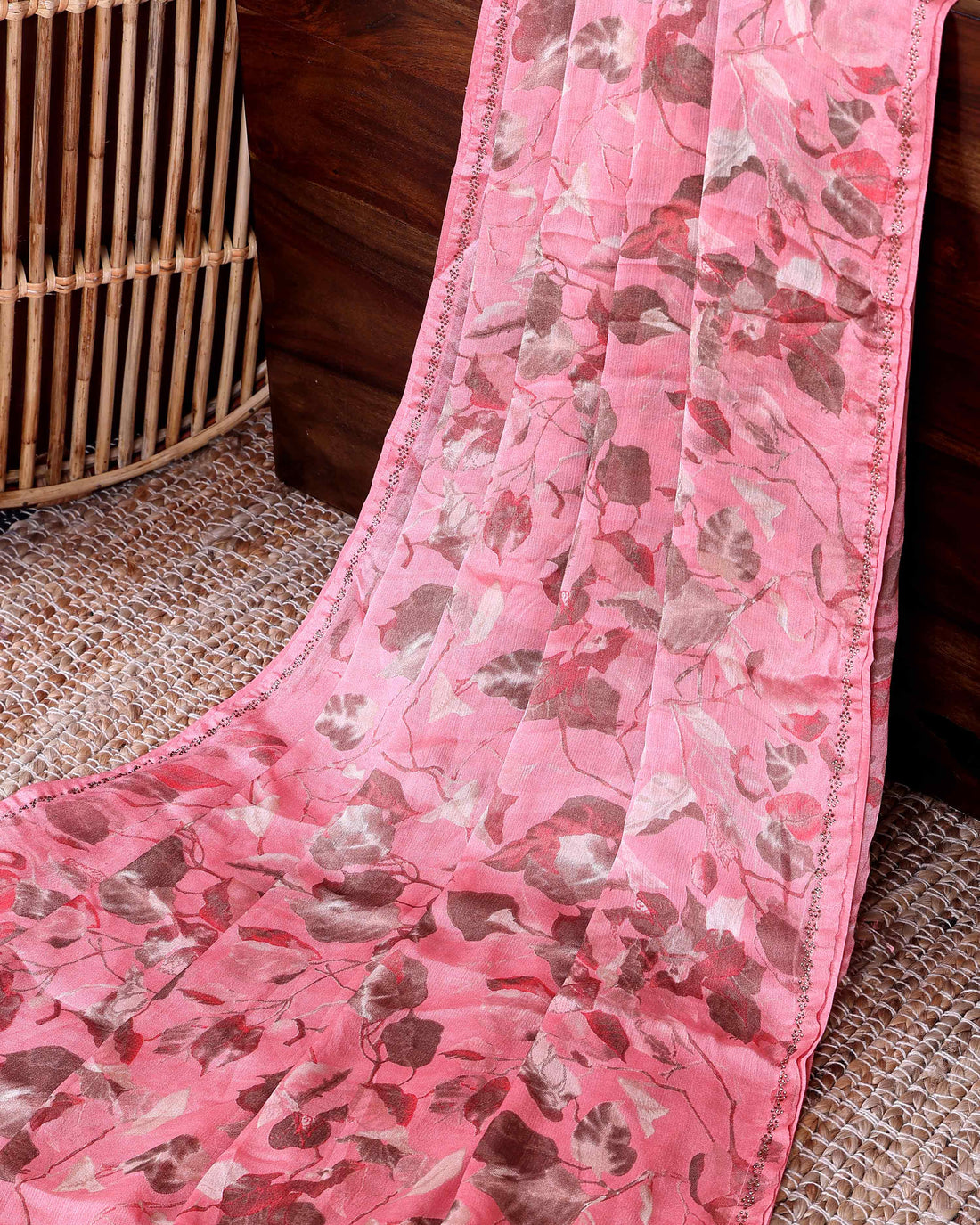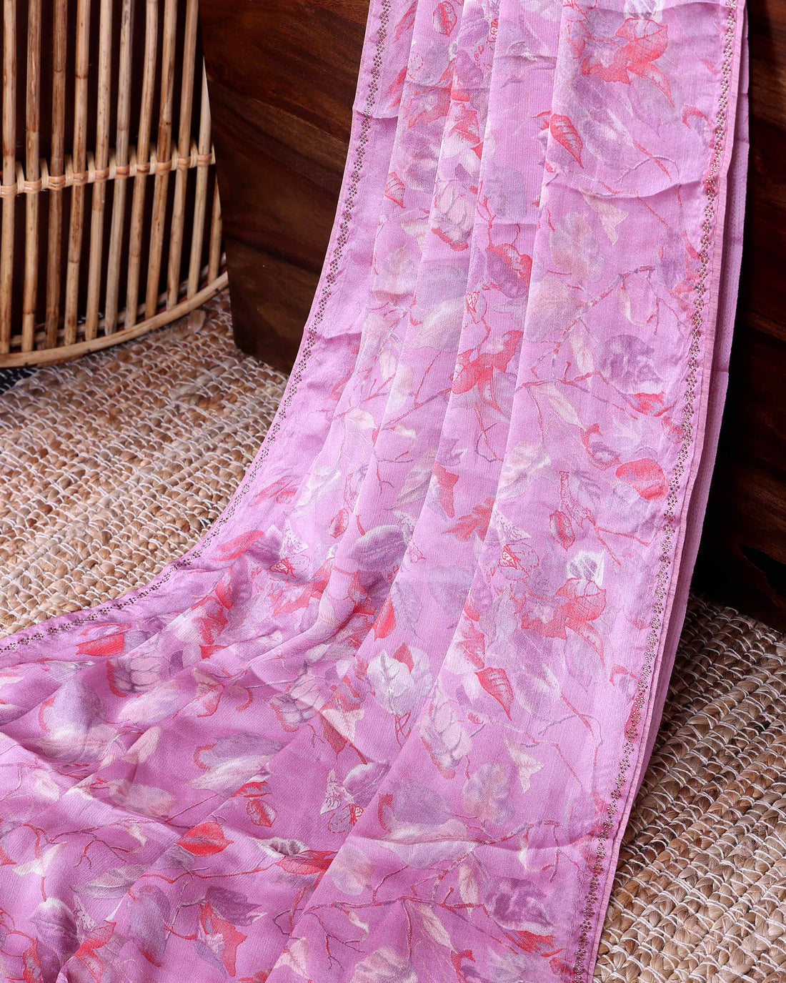 Elegant Georgette Saree with Abstract Floral Print and Delicate Embellished Border - Pink